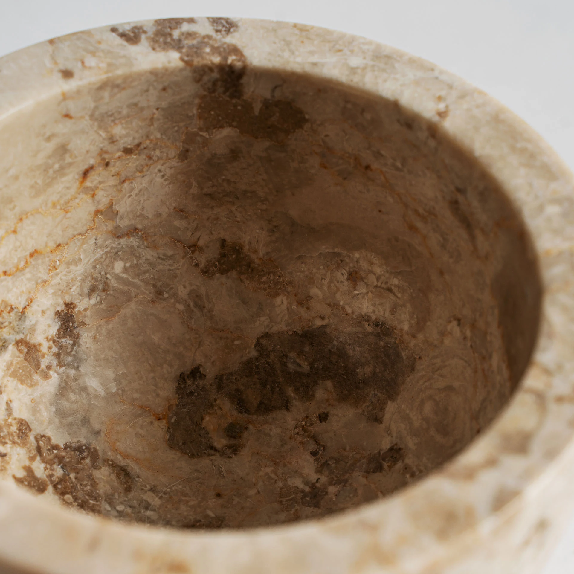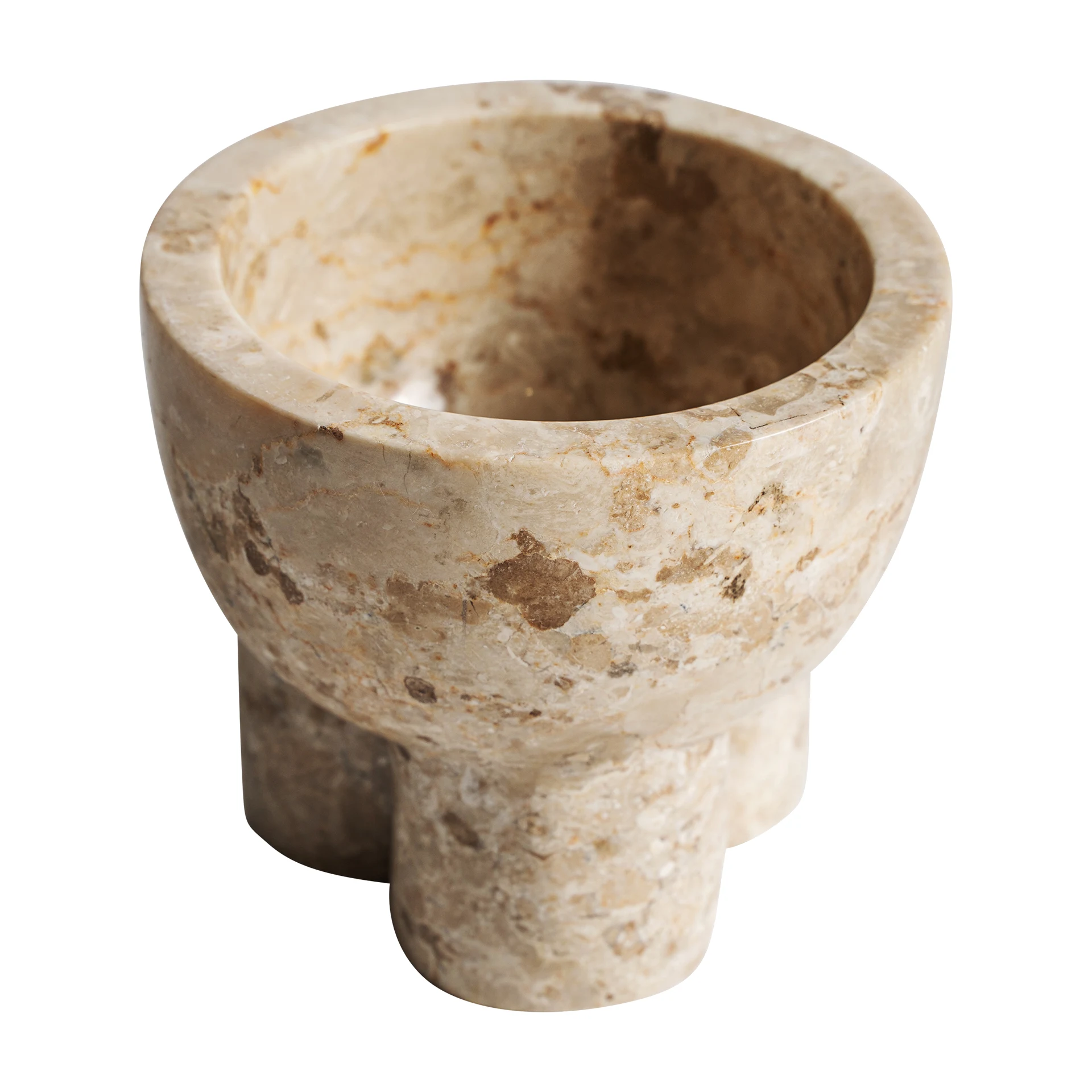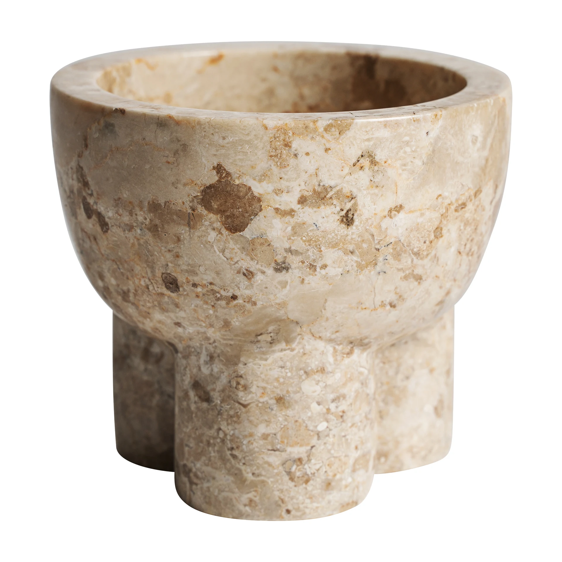 Decorul de masa din marmura bej imbrina sobrietatea si nobletea intr-un design compact. O creatie VICAL care echilibreaza functionalitatea si estetica.