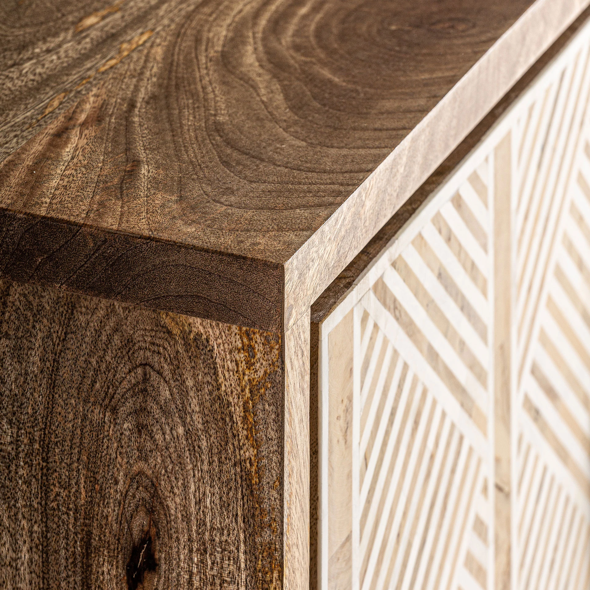 Bufetul Laugna se remarca prin combinatia originala de materiale: lemn de mango, os si fier. Designul art deco, cu linii geometrice si finisaj deschis, adauga textura si sofisticare. O piesa VICAL care transforma depozitarea intr-o opera de arta.
