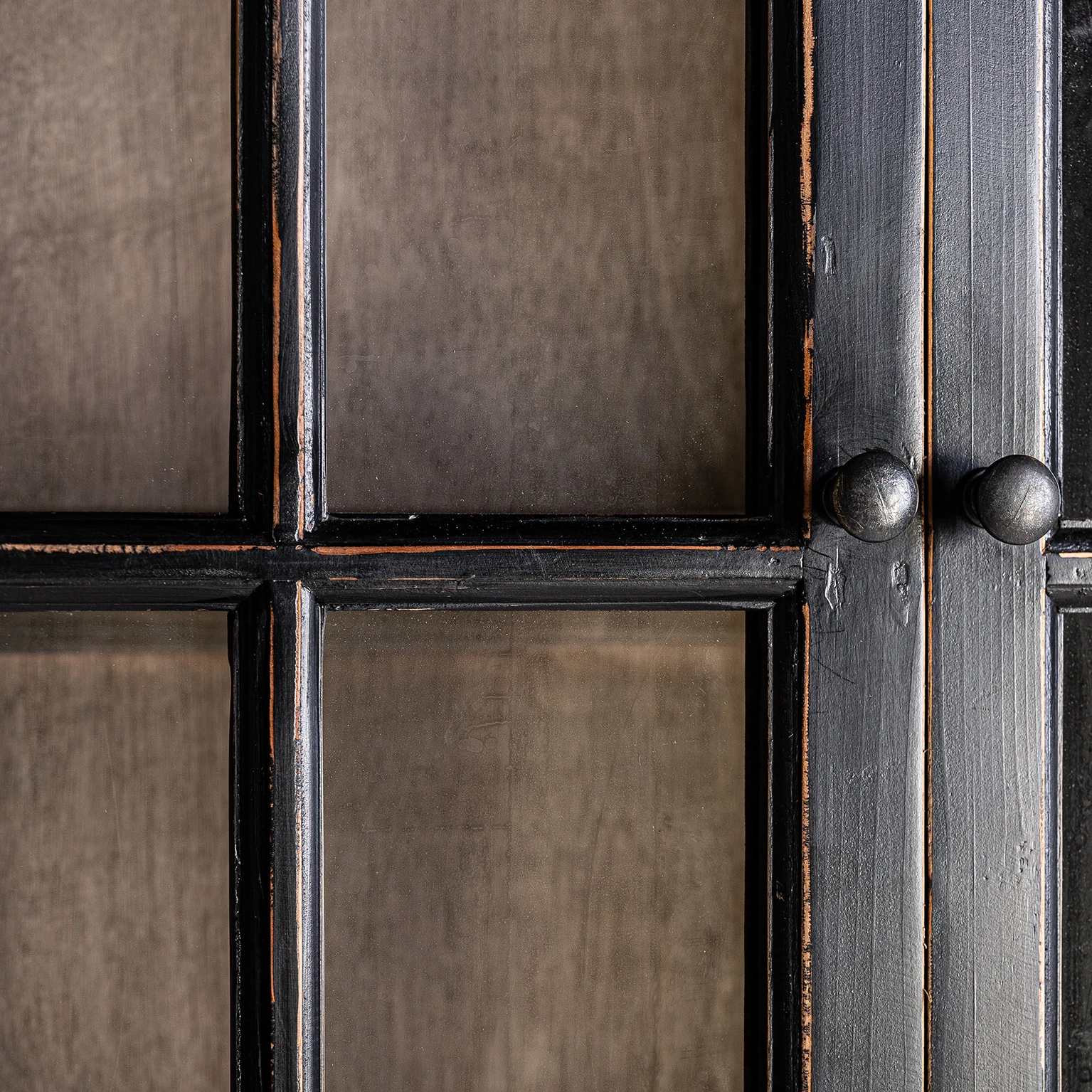 Vitrina Zenica din sticla, stil provensal, realizata din lemn de ulm vopsit in negru, combinata cu cristal.
