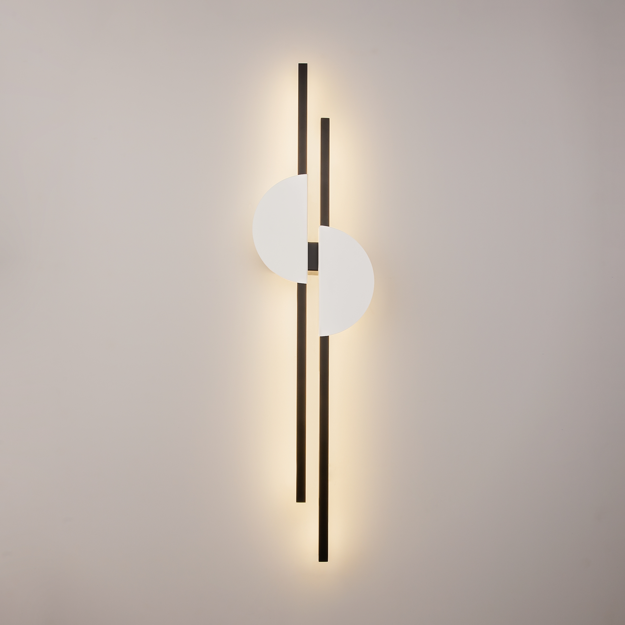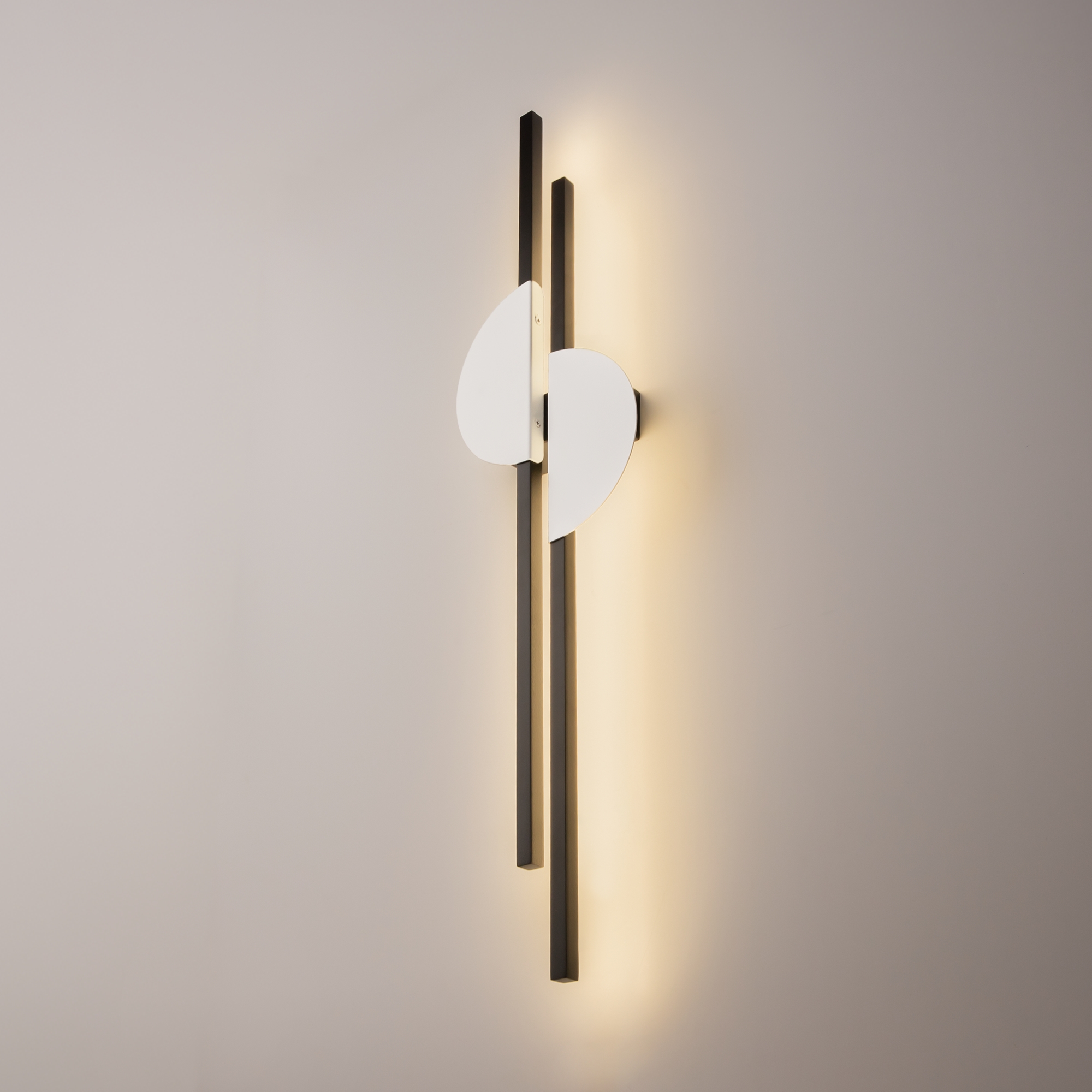 Structura acestui corp de iluminat este fabricată din metal de înaltă calitate, având un abajur negru elegant și elemente decorative disponibile în variantele negru cu alamă sau negru cu alb. Designul se distinge printr-o compoziție asimetrică ce recreează efectul vizual al unui apus de soare pe mare, adăugând personalitate spațiului interior.
