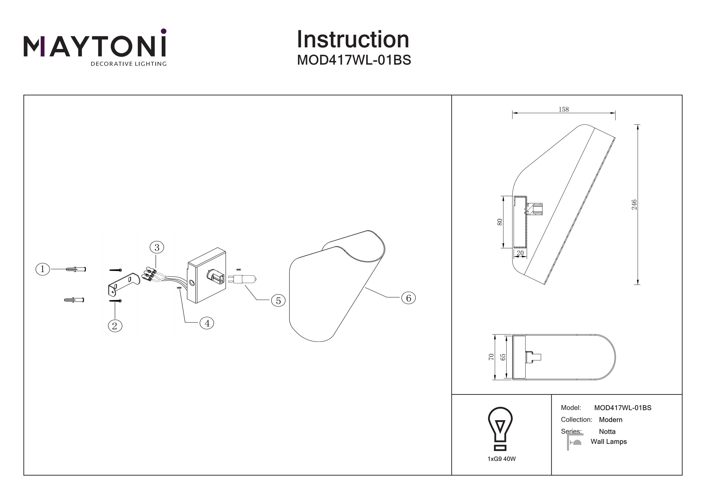 Maytoni Aplică de perete Notta, Metal Alamă, 40W, MAYTONI MOD417WL-01BS