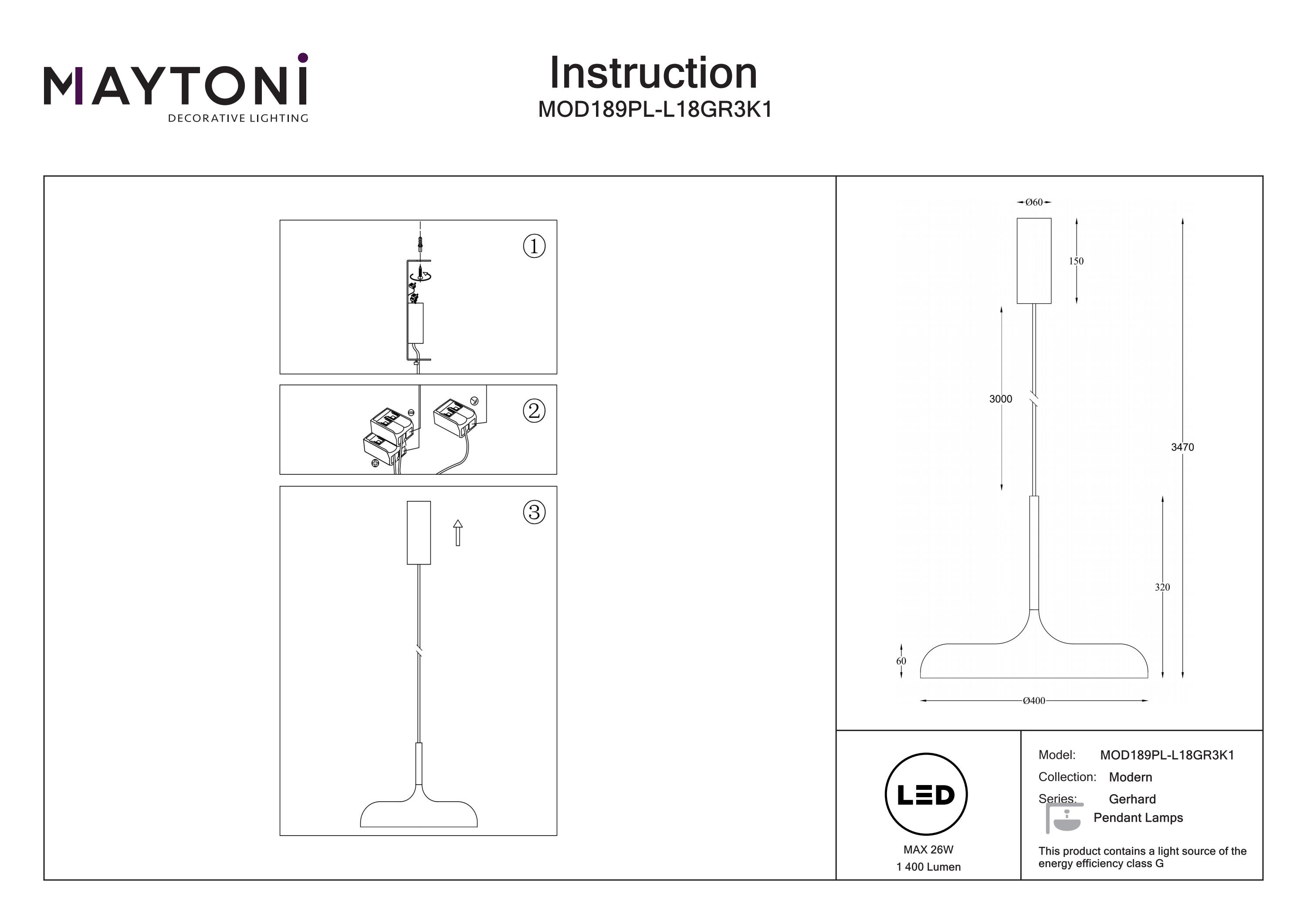 Difuzorul din acril alb mat asigură o transmisie excelentă a luminii, eliminând strălucirea orbitoare. Include o sursă de lumină LED cu temperatura de culoare de 3000K și un cablu reglabil cu lungimea de până la 3 metri.
