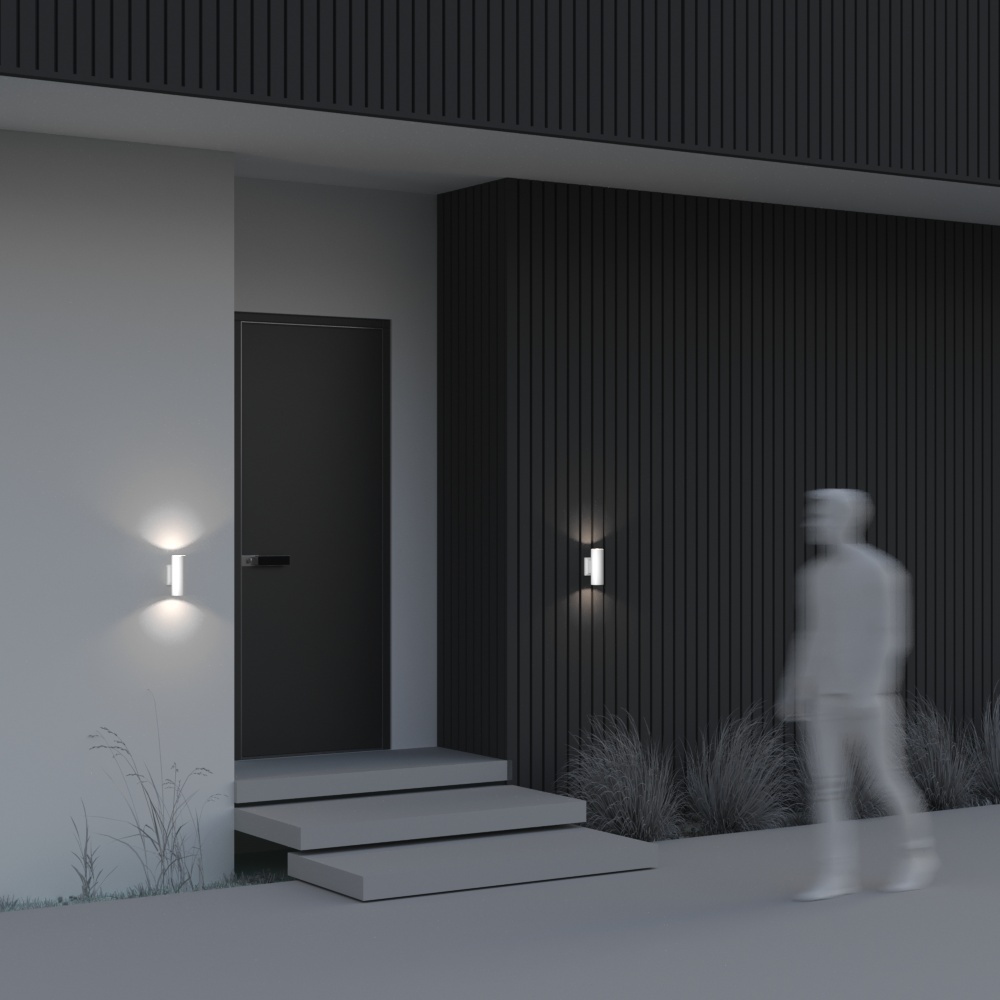 Corp din metal cu finisaj prin vopsire în câmp electrostatic, disponibil în culorile negru, gri sau alb. Această serie dispune de sticlă de protecție etanșă și include modele cu iluminare unidirecțională sau bidirecțională.