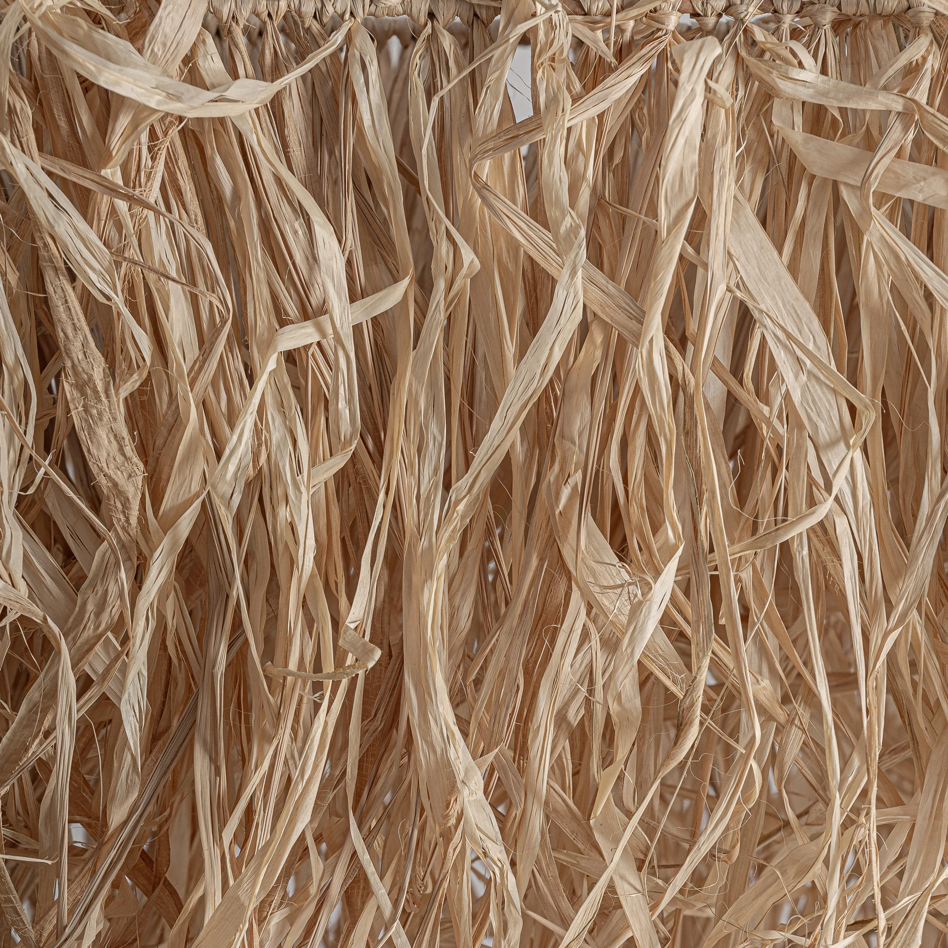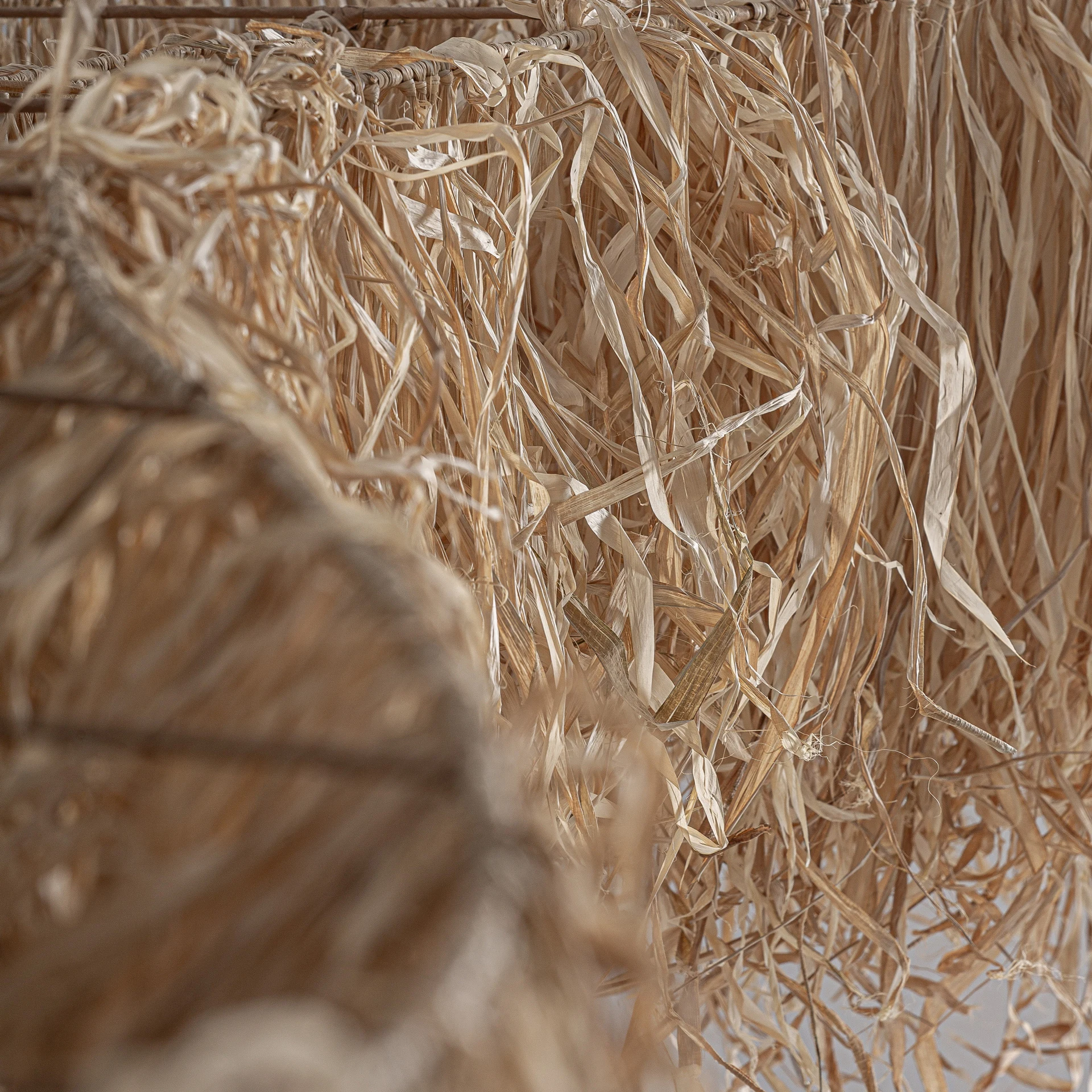 Decor pentru perete si tavan, stil boho, realizat din rafie maro.