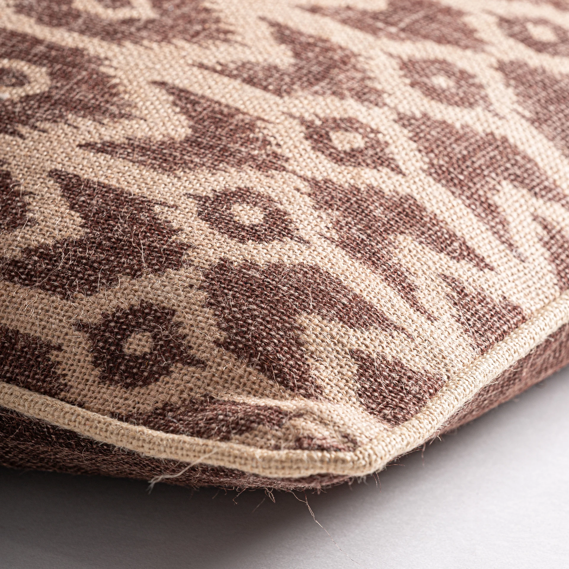 Perna Tacio, stil clasic, realizata din iuta bej, combinata cu tonuri neutre de fibra naturala. Produs detasabil.