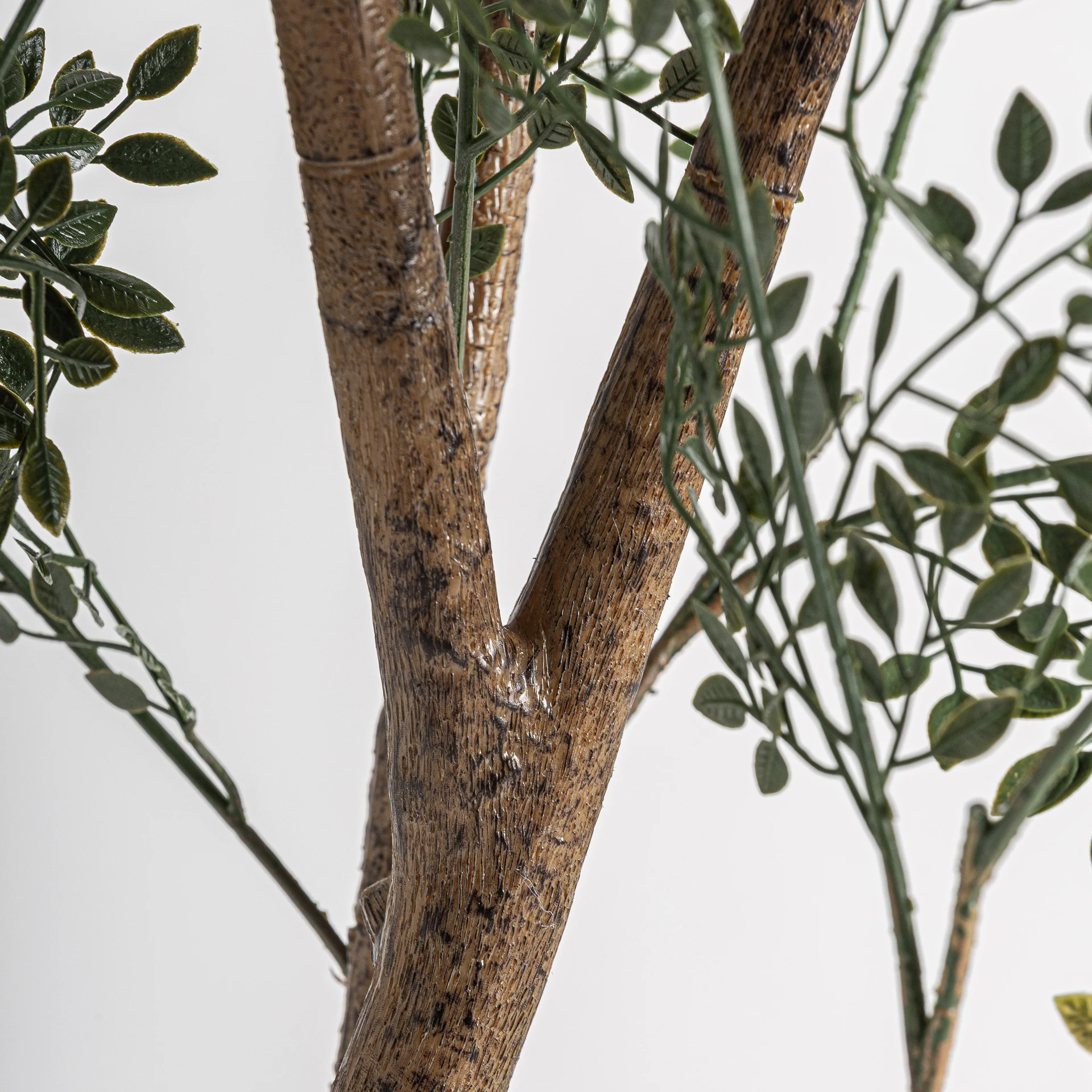 Planta de eucalipt, stil clasic, realizata din polietilena verde, combinata cu polipropilena neagra si beton negru.