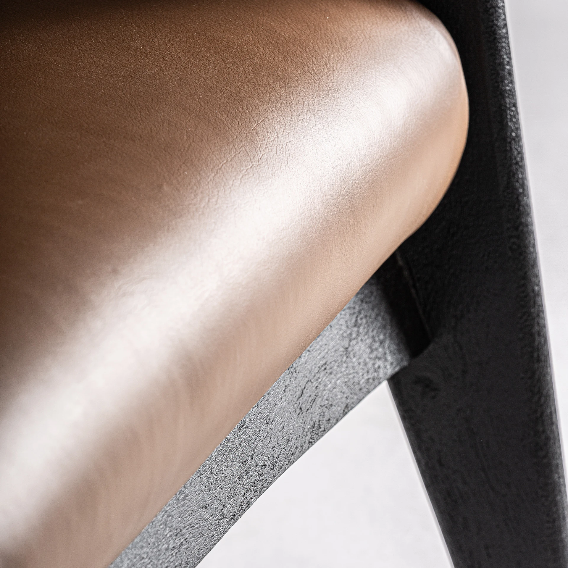 Confort cu eleganta grafica. Fotoliul Beslon este realizat din lemn de acacia negru si tapitat in piele maro, combinand modernitatea si traditia cu o prezenta sofisticata.