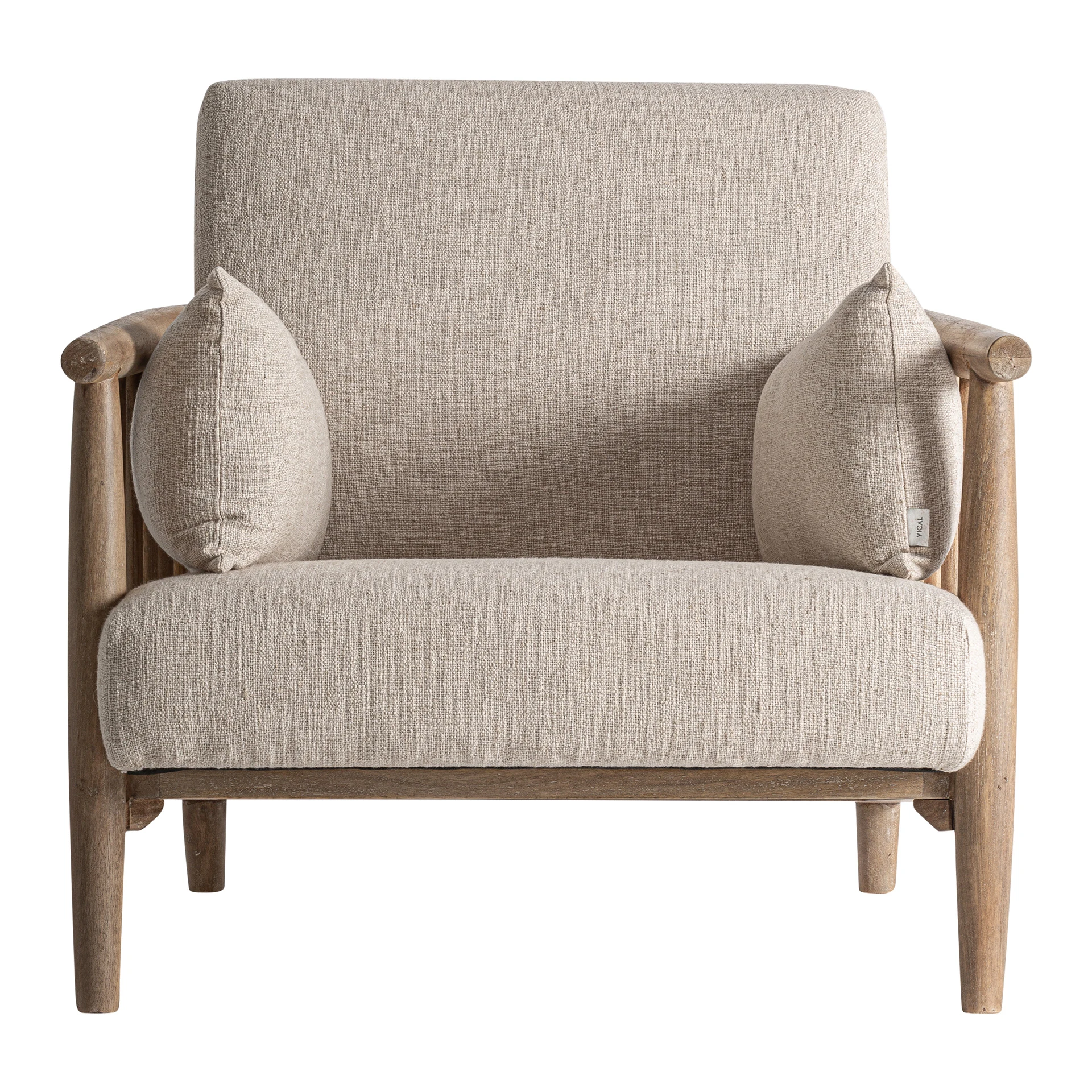 Fotoliu Grebin, stil contemporan, realizat din lemn de mesteacan maro, combinat cu bumbac bej. Husa detasabila.
