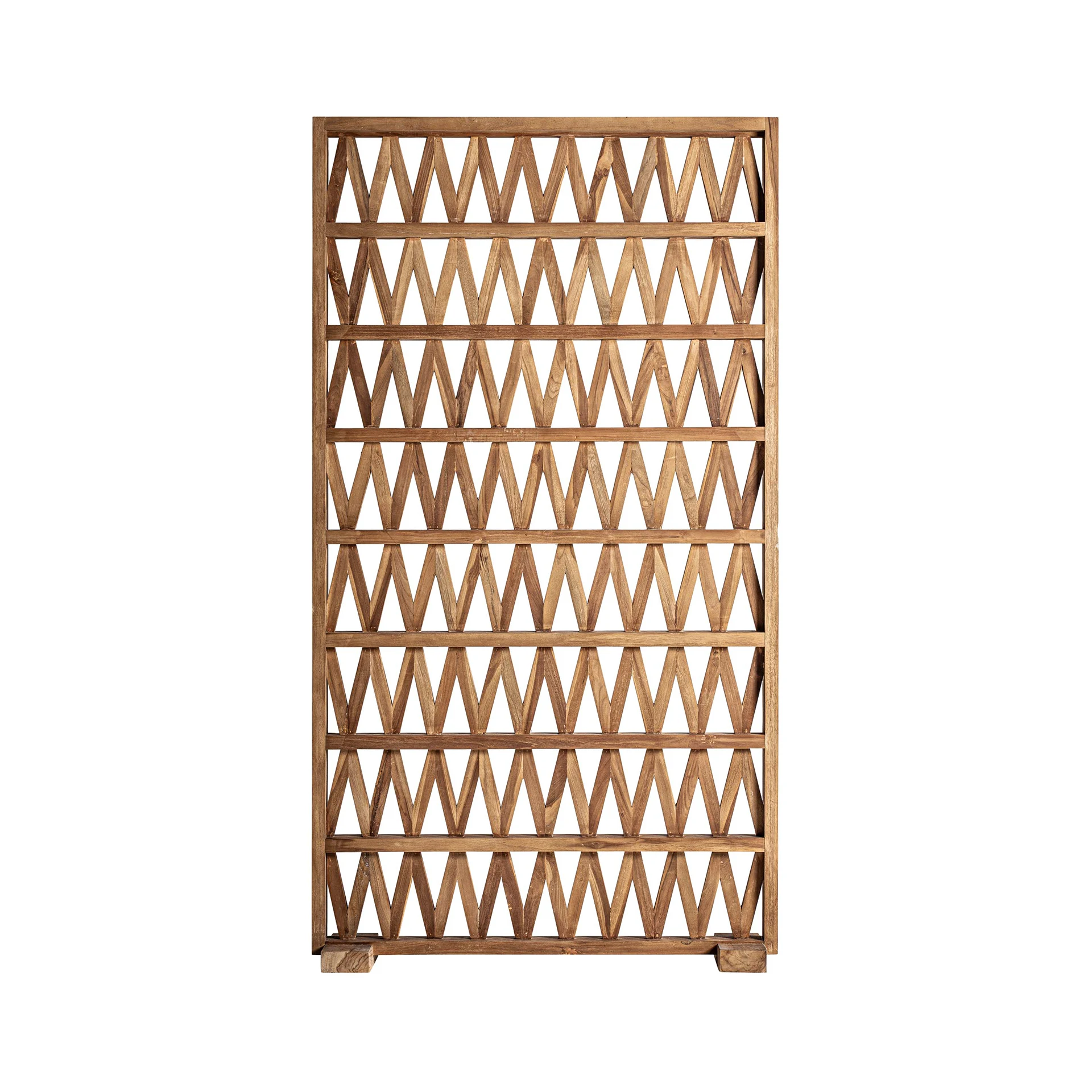 Ecranul Viriat de la VICAL, din lemn de tec maro, se remarca prin designul boho si structura usoara. O piesa care imparte spatiile cu stil si naturalete.