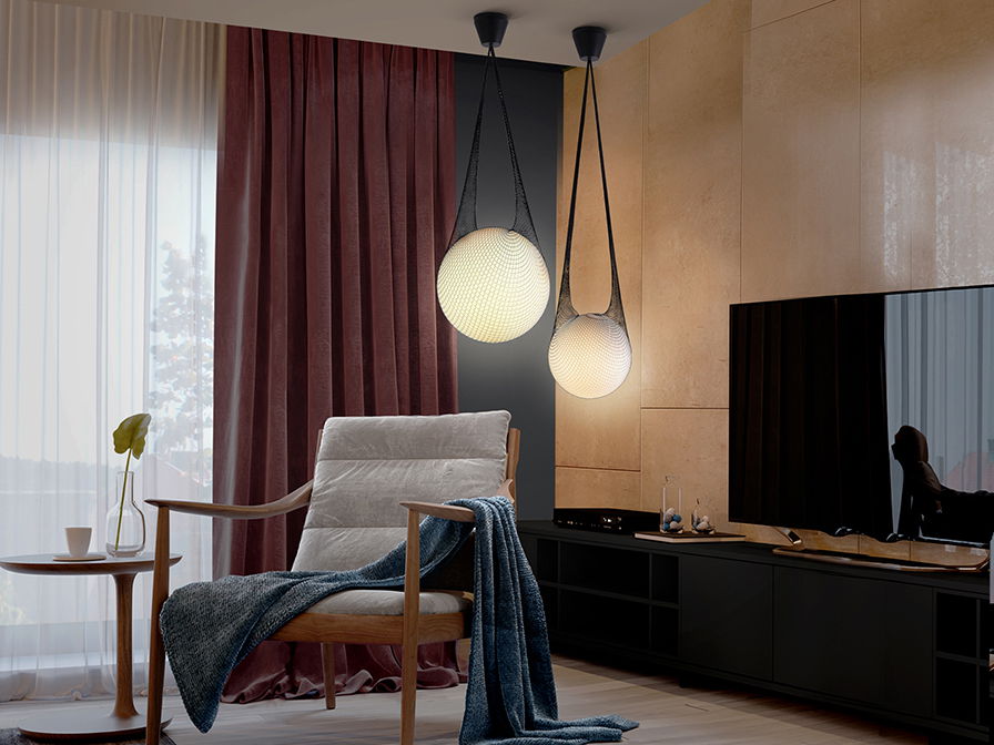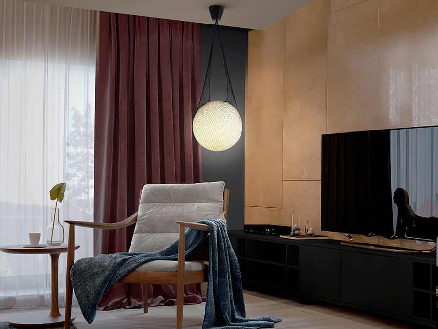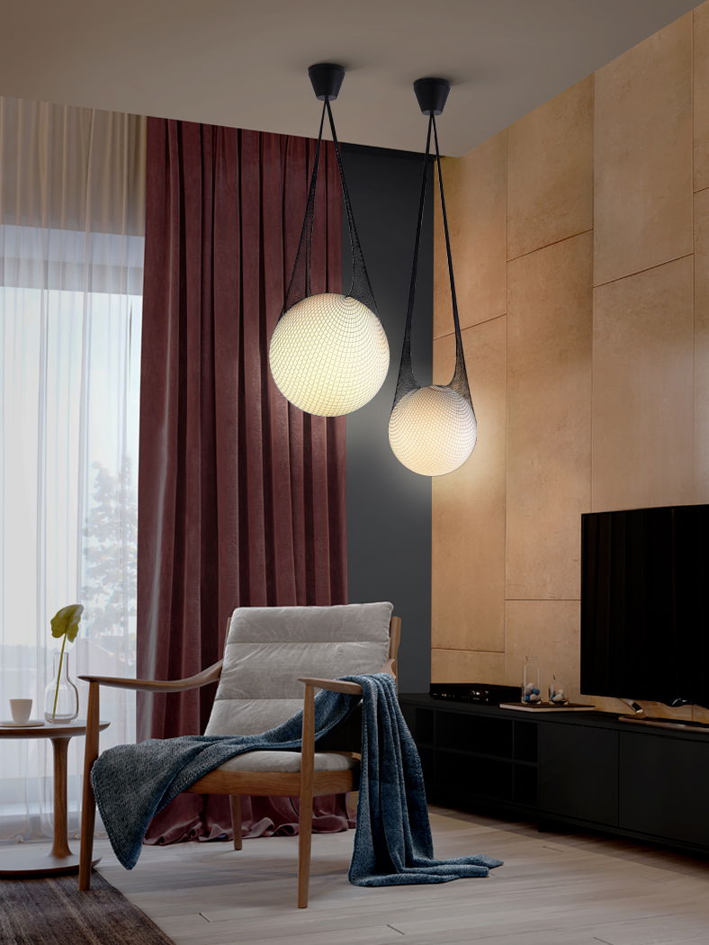 Lustra rotunda alba Filipi Ø 40 cm, glob de sticla suspendat in mesh, inaltime reglabila, 353021 - Schuller