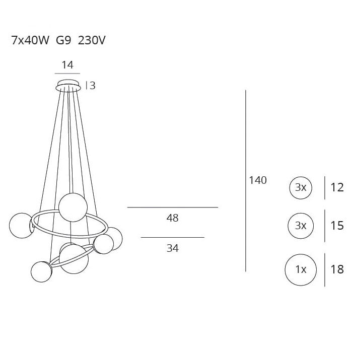 Diametrul abajurului: 1x18cm, 3x15cm, 3x12cm