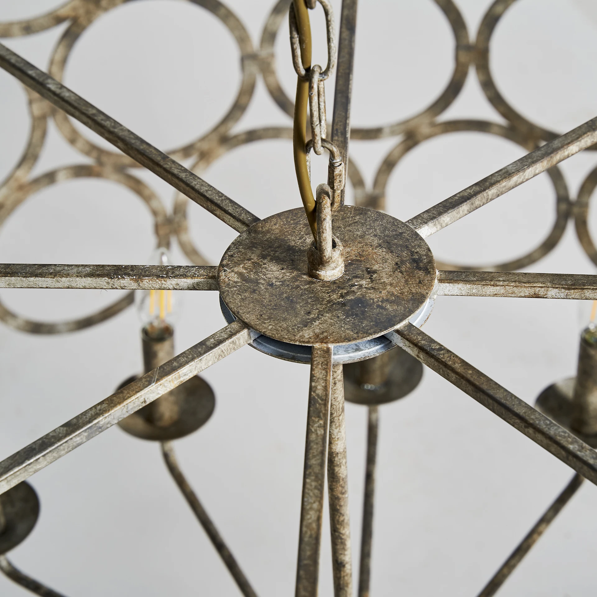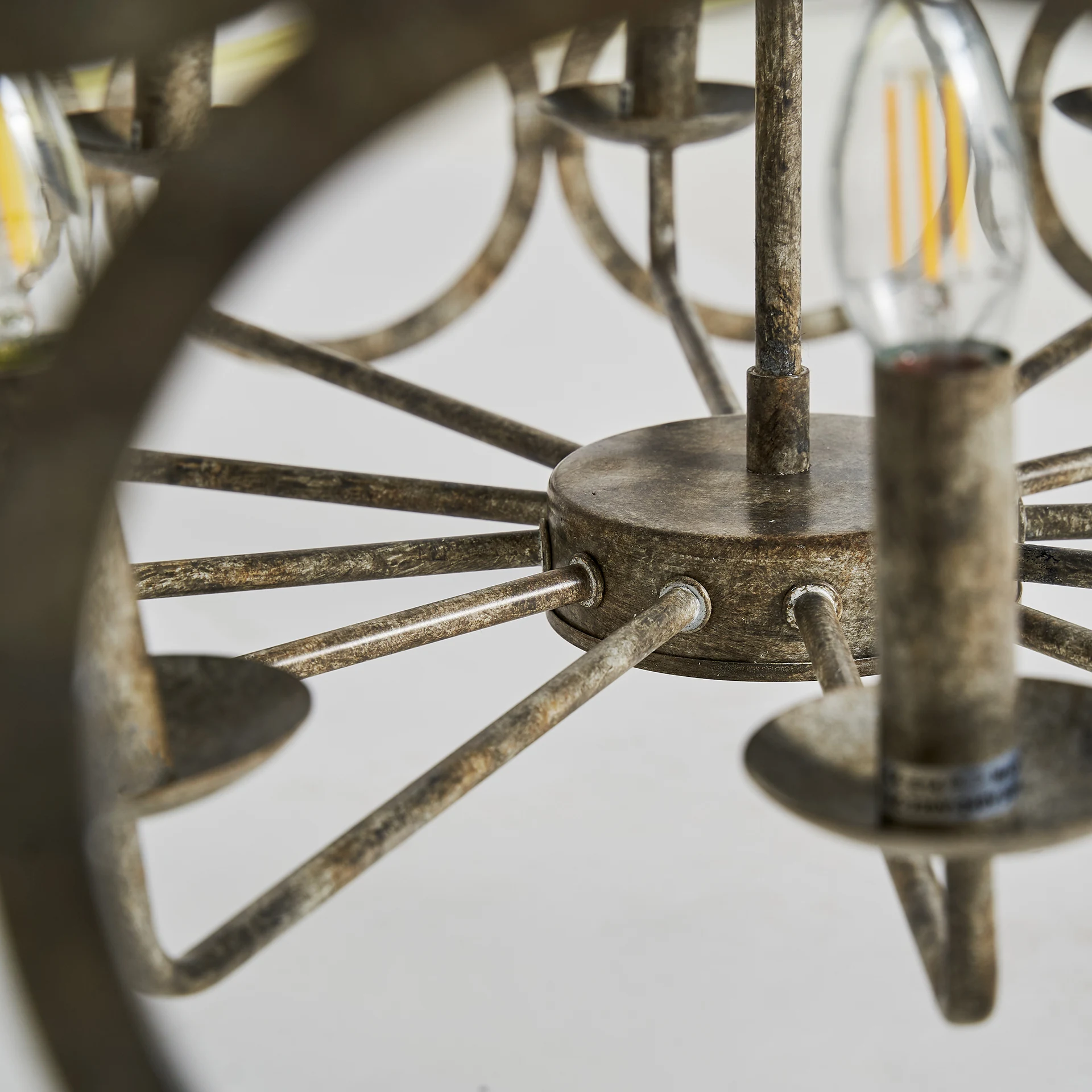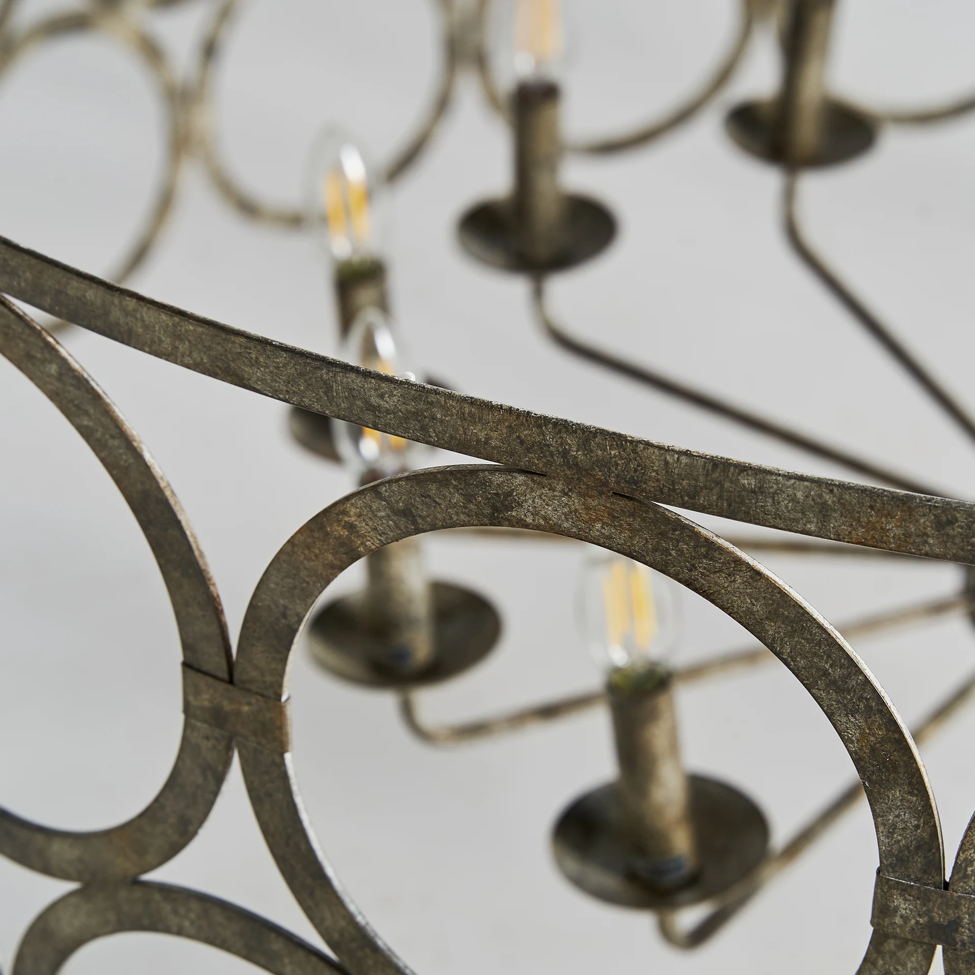 Lampa de tavan, stil provensal, realizata din fier cu finisaj argintiu patinat.