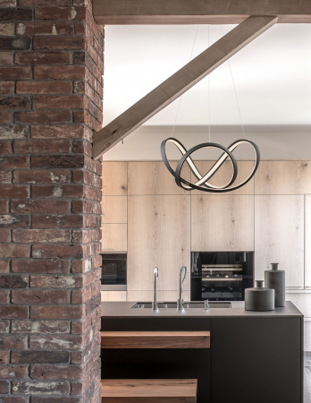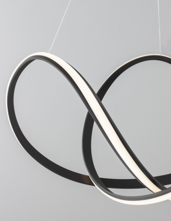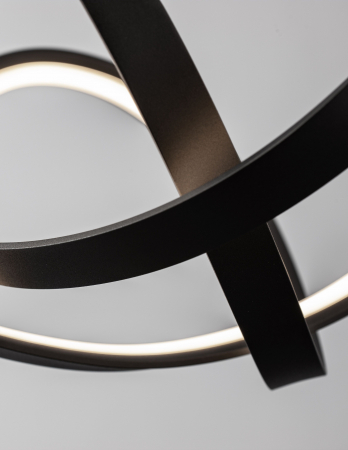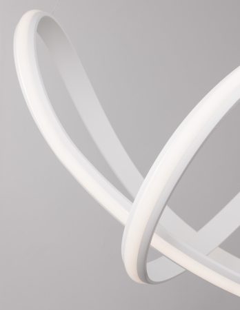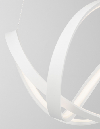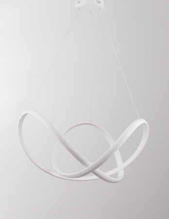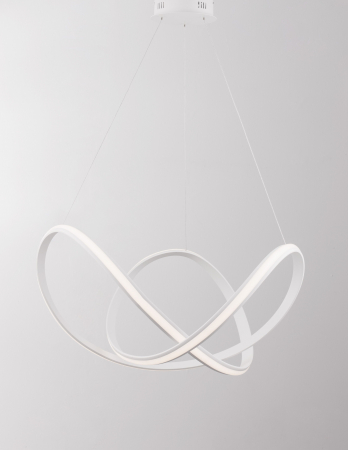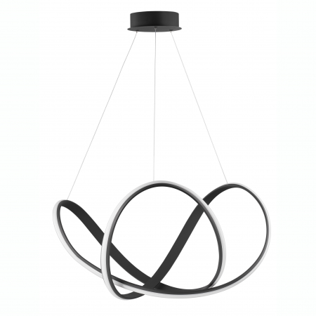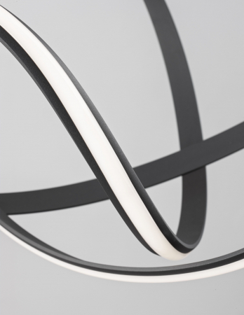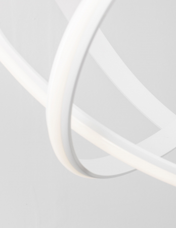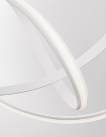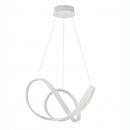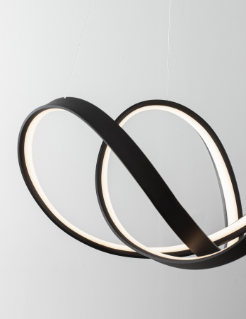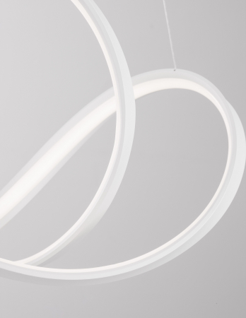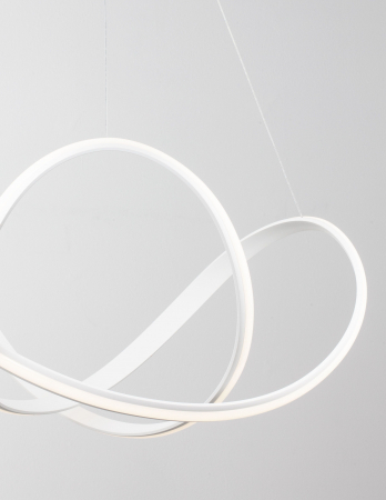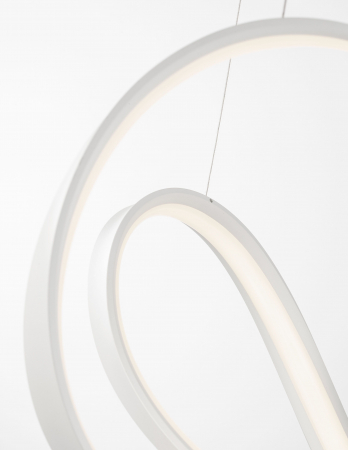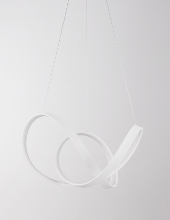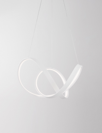 Lustră modernă albă sau neagră în formă de buclă Famke cu iluminare LED dimabilă, realizată din aluminiu cu finisaje de înaltă calitate.