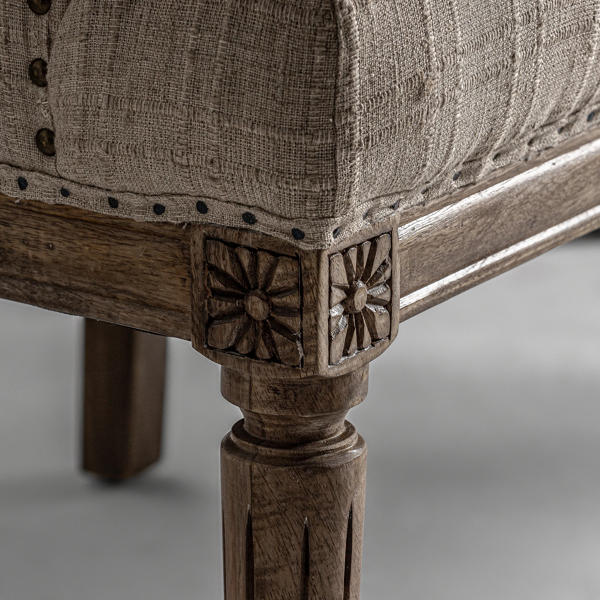 Canapea capitonata bar hestroff, stil clasic, din lemn de mango bej combinata cu poliester si spuma.