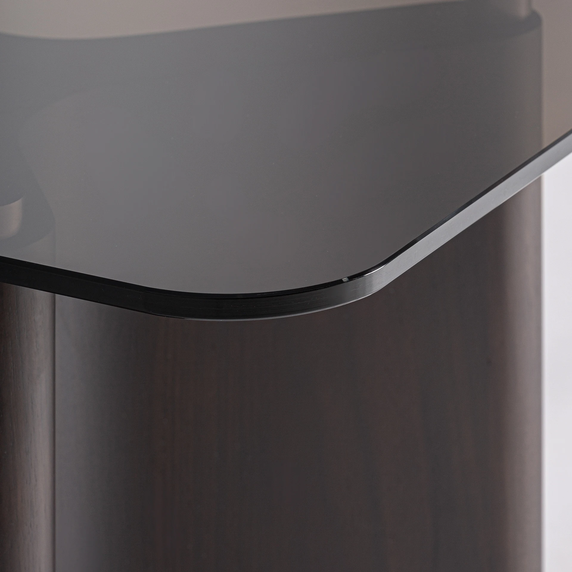 Masuta laterala Bransby de la VICAL imbratiseaza o estetica moderna si eleganta, combinand lemn de frasin negru cu sticla gri termorezistenta. Structura sa curbata adauga prezenta si sofisticare proiectelor care cauta un design cu personalitate.