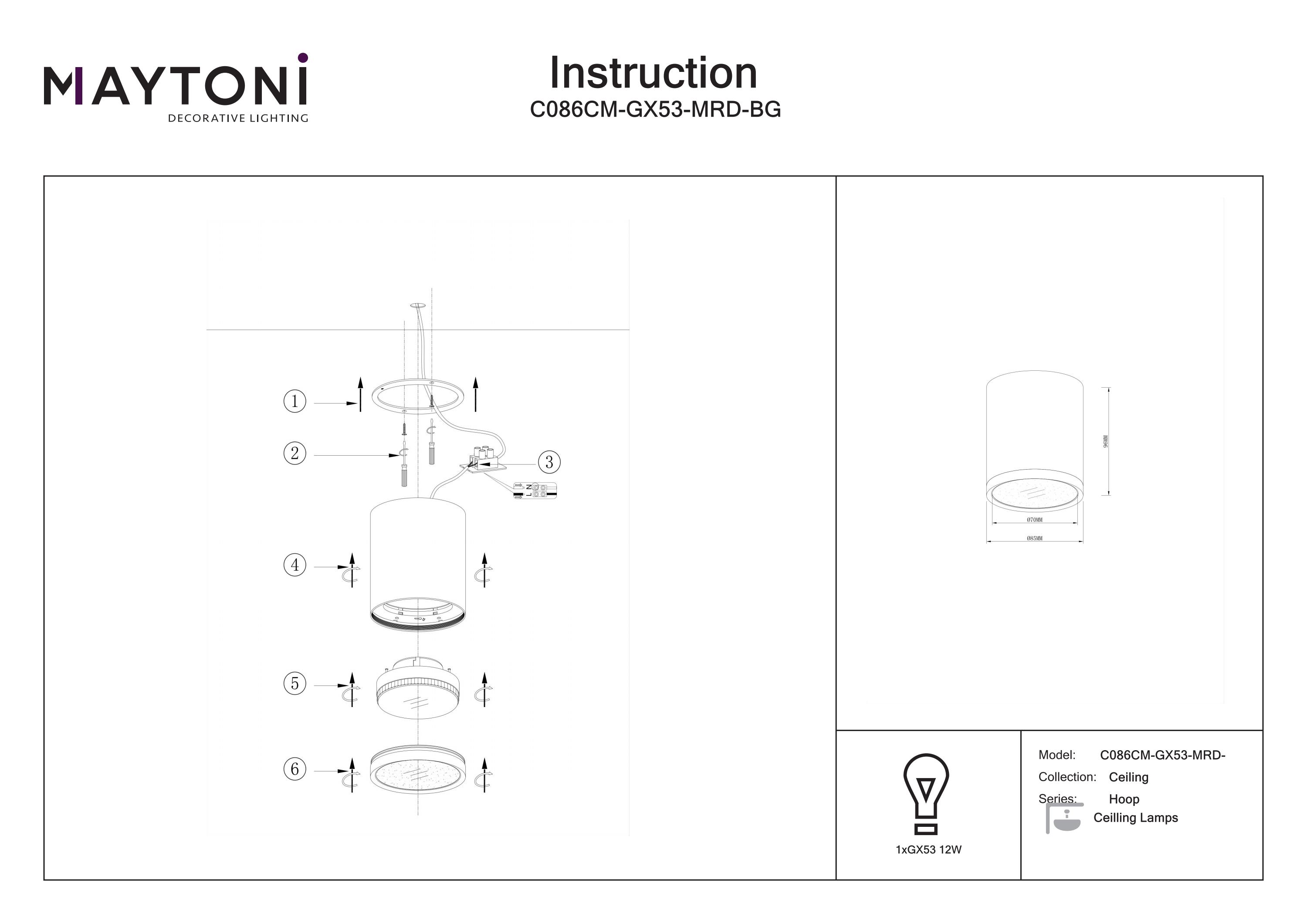 Corp de iluminat realizat din metal rezistent, cu un finisaj modern. Sursa de lumină este reprezentată de un bec tip GX53 (nu este inclus în pachet).