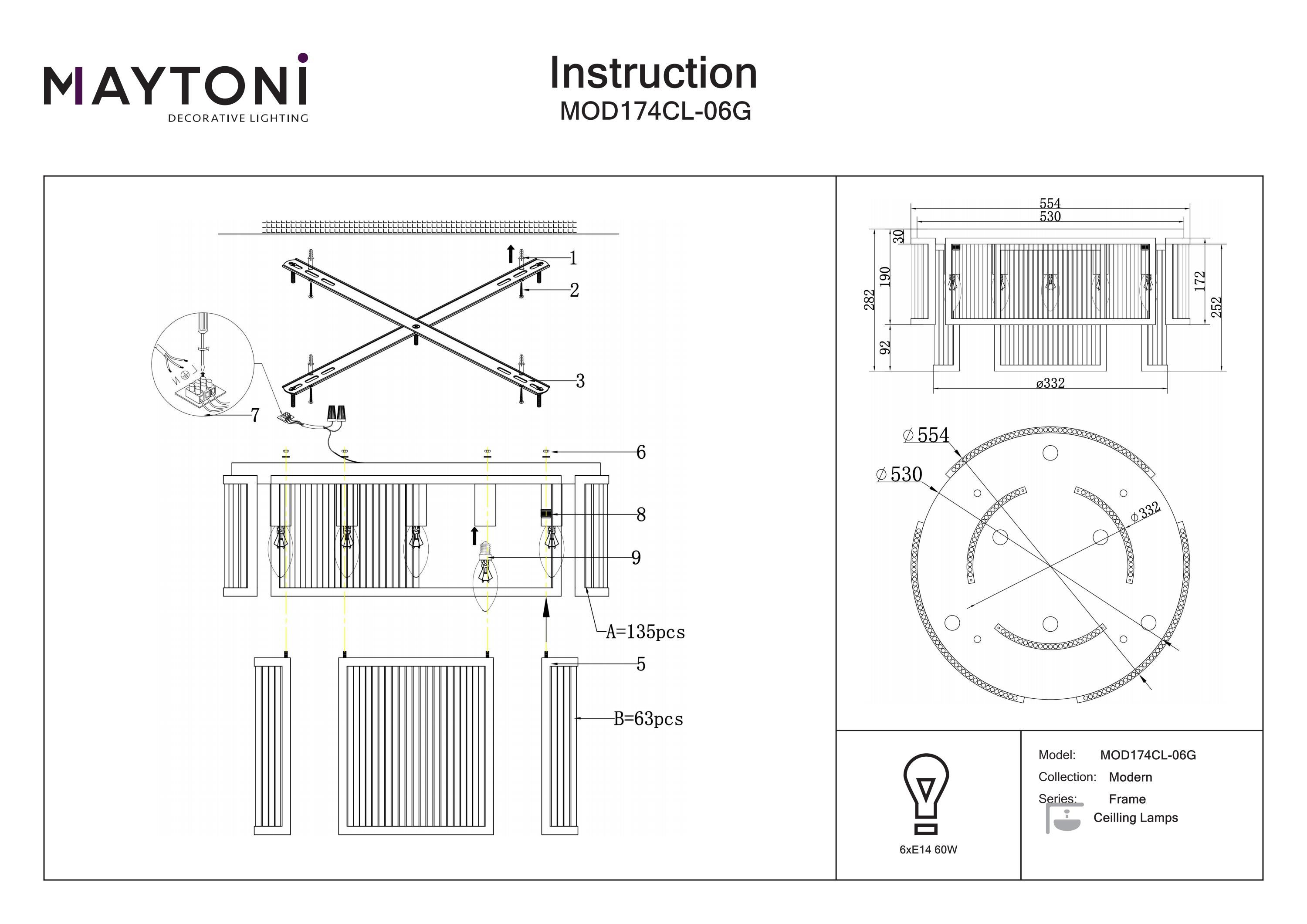 Corpul de iluminat este echipat cu soclu E14 pentru o compatibilitate variată, însă becurile nu sunt incluse, permițându-vă să personalizați atmosfera luminoasă a spațiului dumneavoastră.