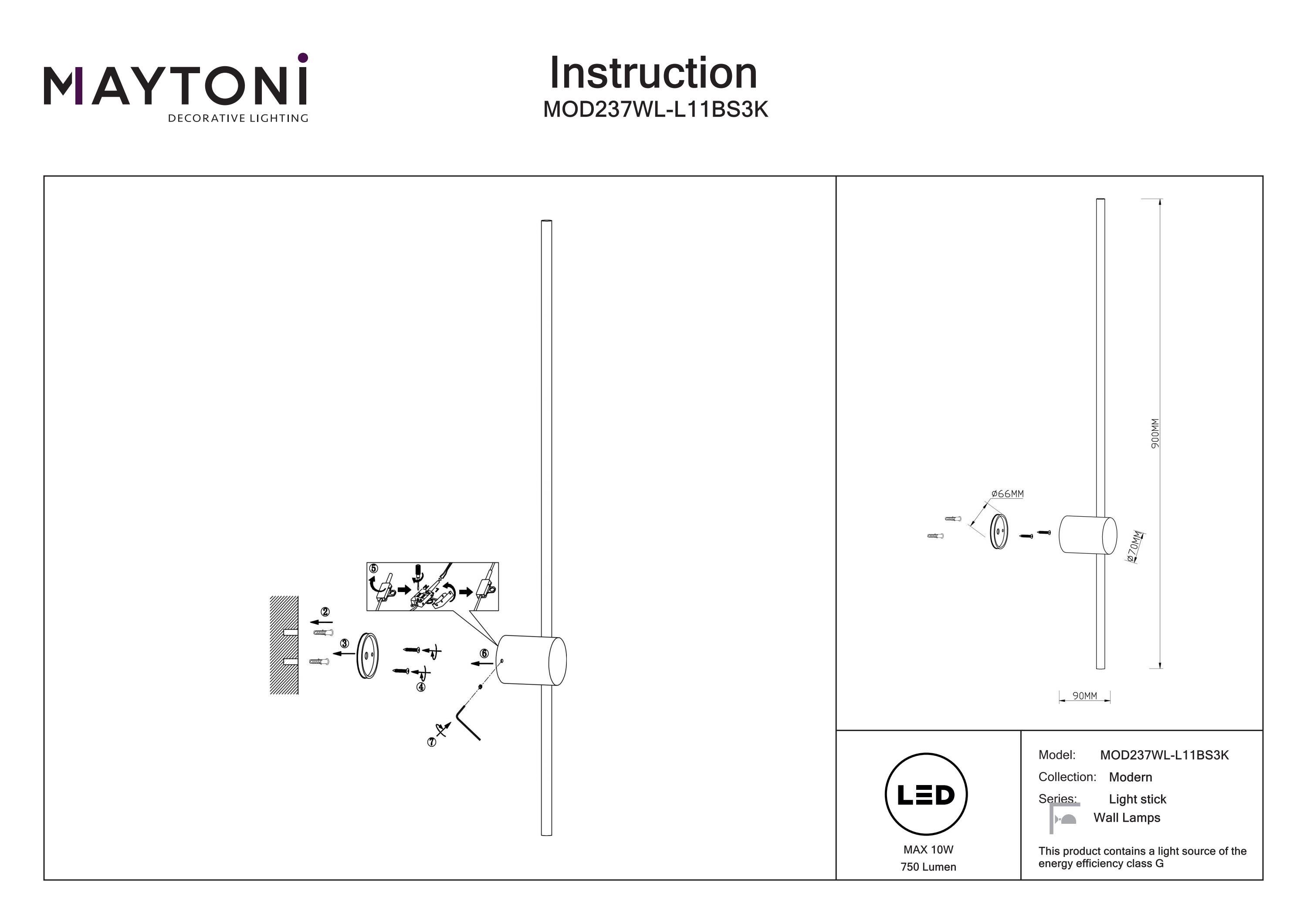 Maytoni Aplică de perete LIGHT STICK, Aluminiu Alamă, 10W, MAYTONI MOD237WL-L11BS3K