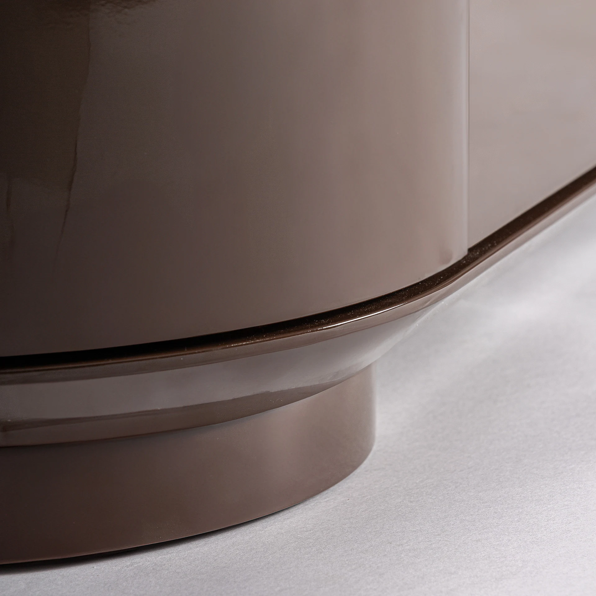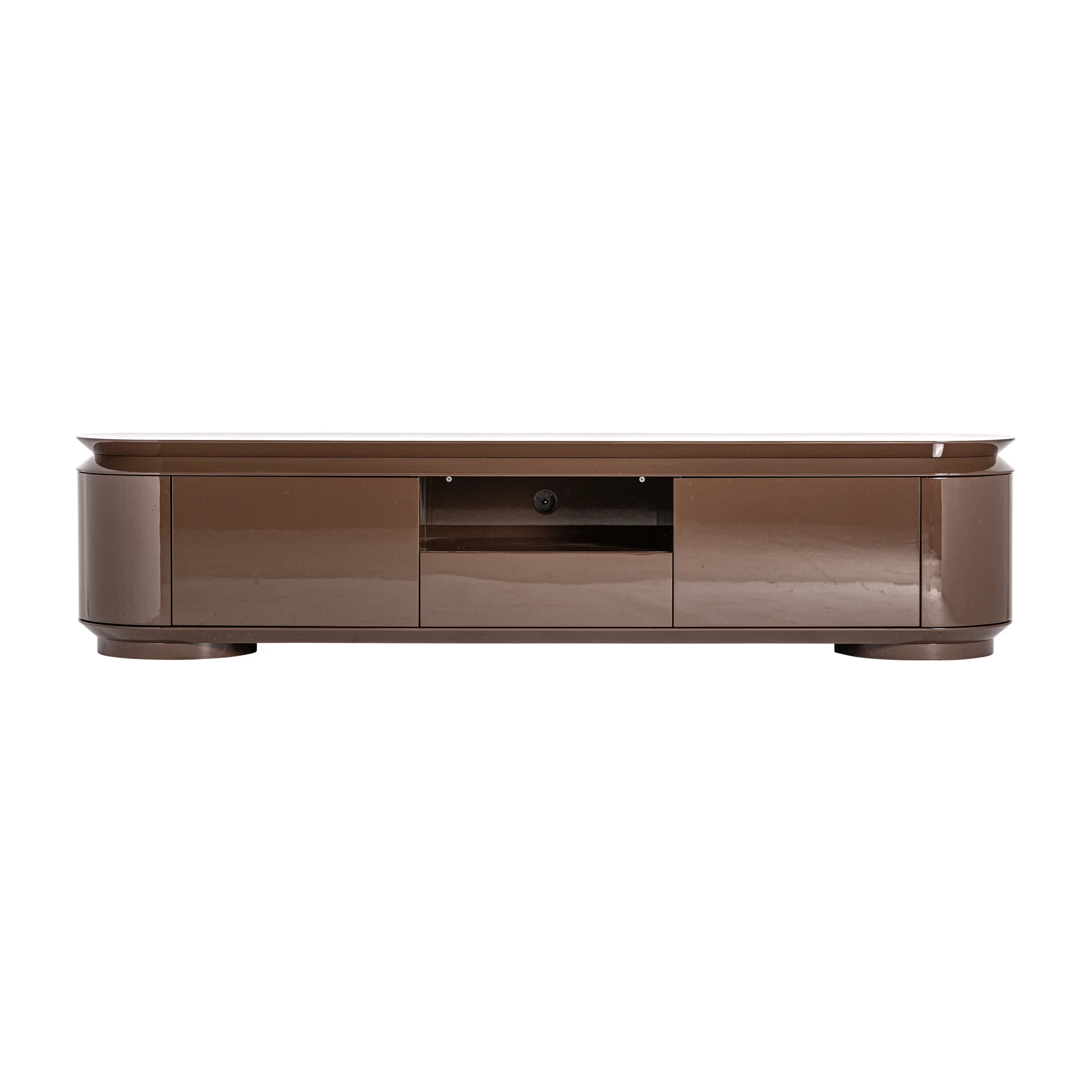 Comoda TV Trubia, stil contemporan, realizata din MDF maro cu finisaj lucios.