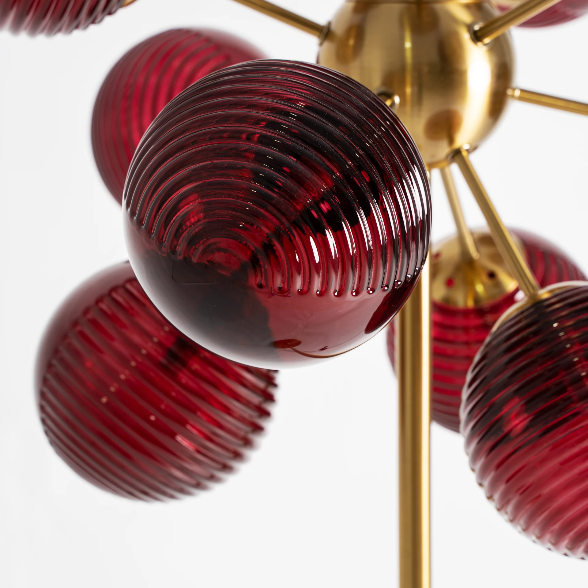 Lampa de podea Alaia de la VICAL este un obiect decorativ cu un spirit sculptural: grupuri de sticla burgundy ridicandu-se pe o baza aurie. Mai mult decat iluminat, imbraca spatiul cu o prezenta unica si sofisticata.