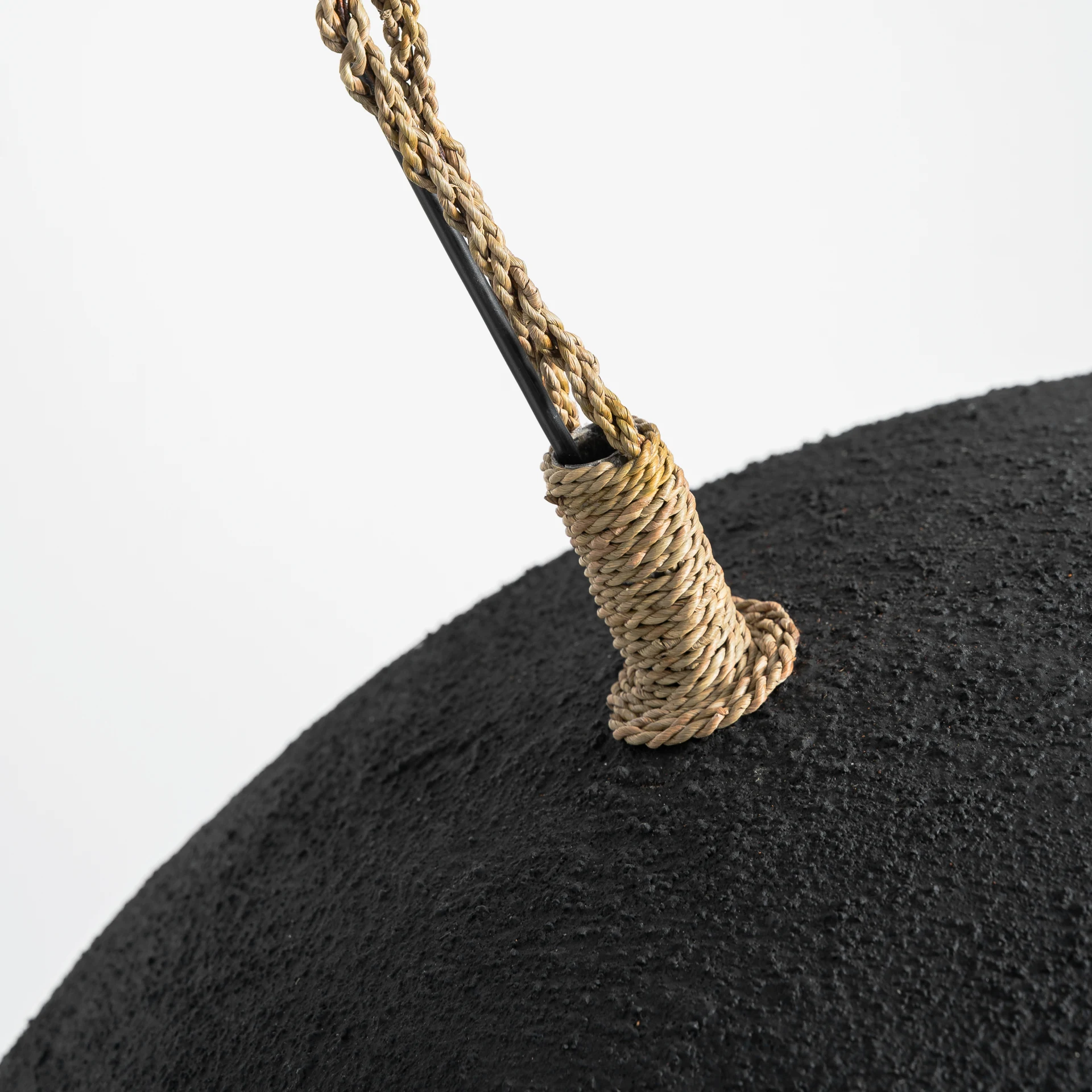 Lampa de tavan Lierop, stil contemporan, realizata din rasina neagra, combinata cu metal auriu.