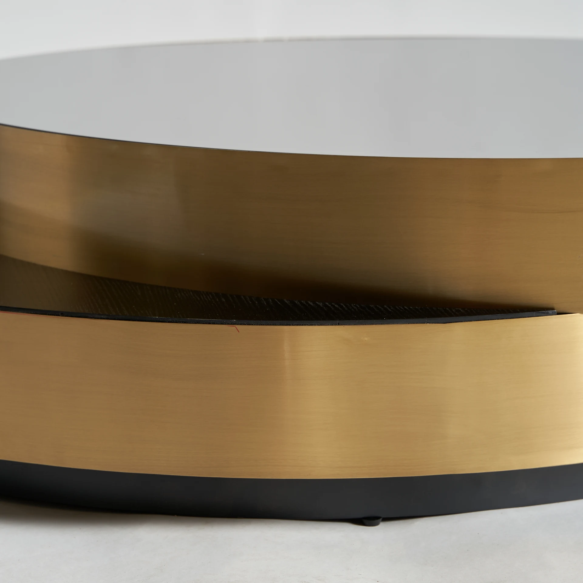 Masuta de cafea Grein, stil art deco, fabricata din otel negru, combinata cu sticla aurie si lemn. Produs demontabil.