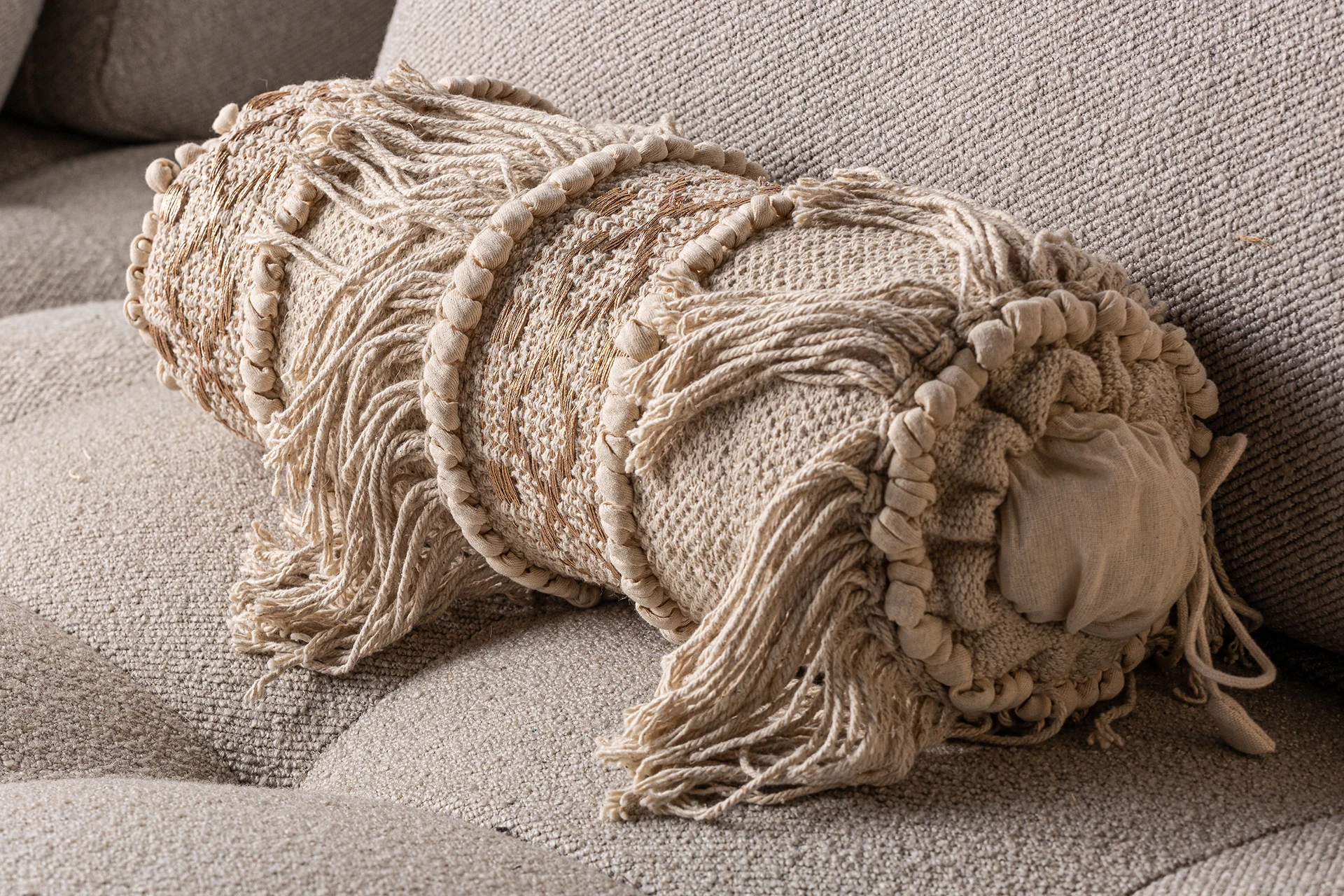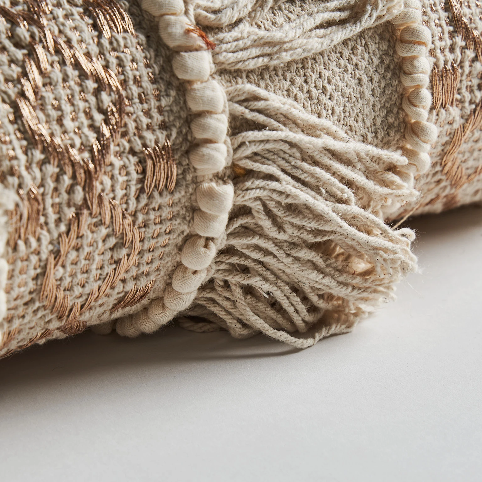 Perna Whil de la VICAL, din bumbac brodat, combina tonuri crem cu fire decorative. O piesa vintage care adauga textura si delicatete spatiului.