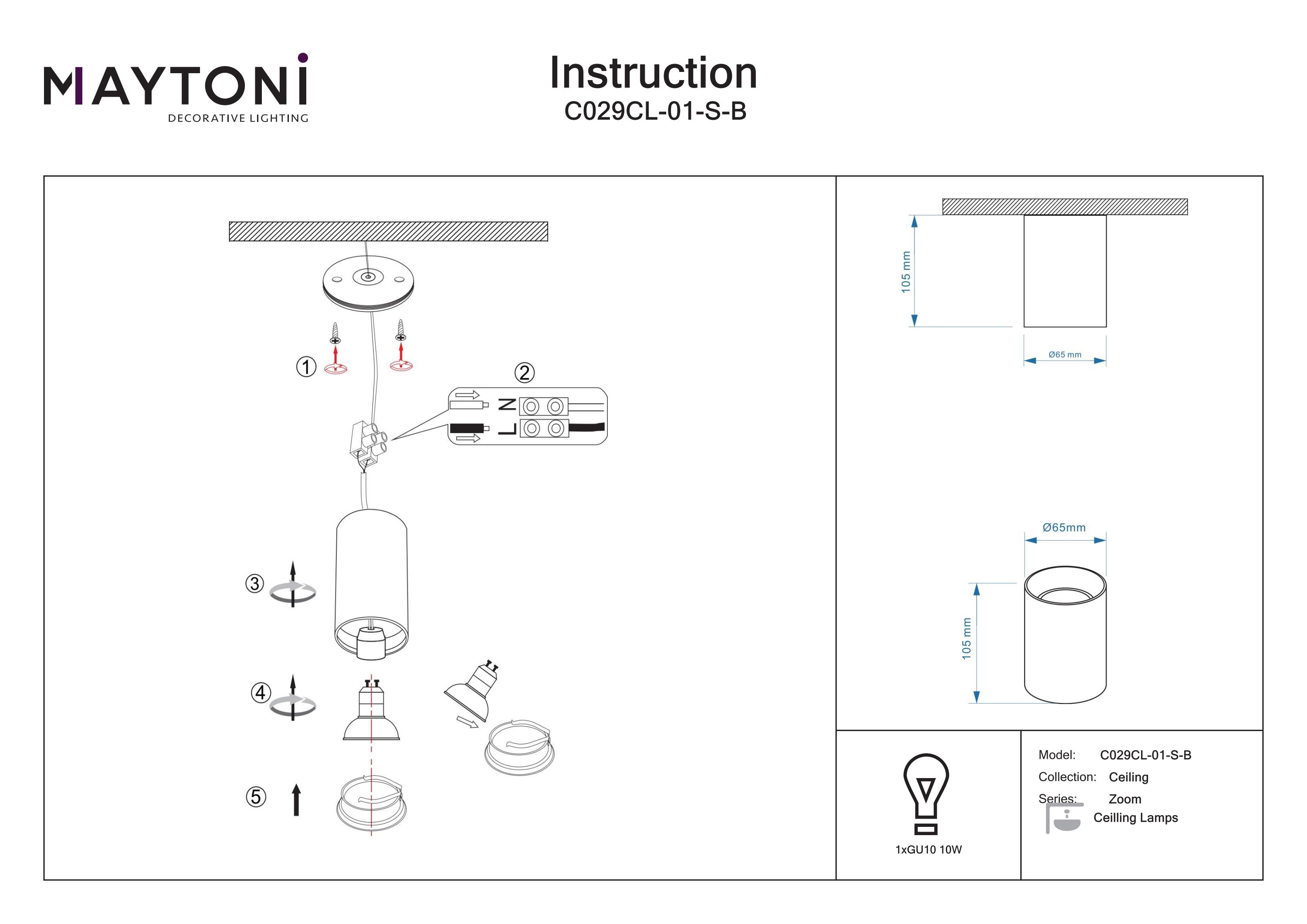 Acest corp de iluminat din metal are un grad de protecție IP65, fiind protejat eficient împotriva umidității și a prafului. Sursa de lumină necesită un bec de tip GU10, care nu este inclus în pachet.