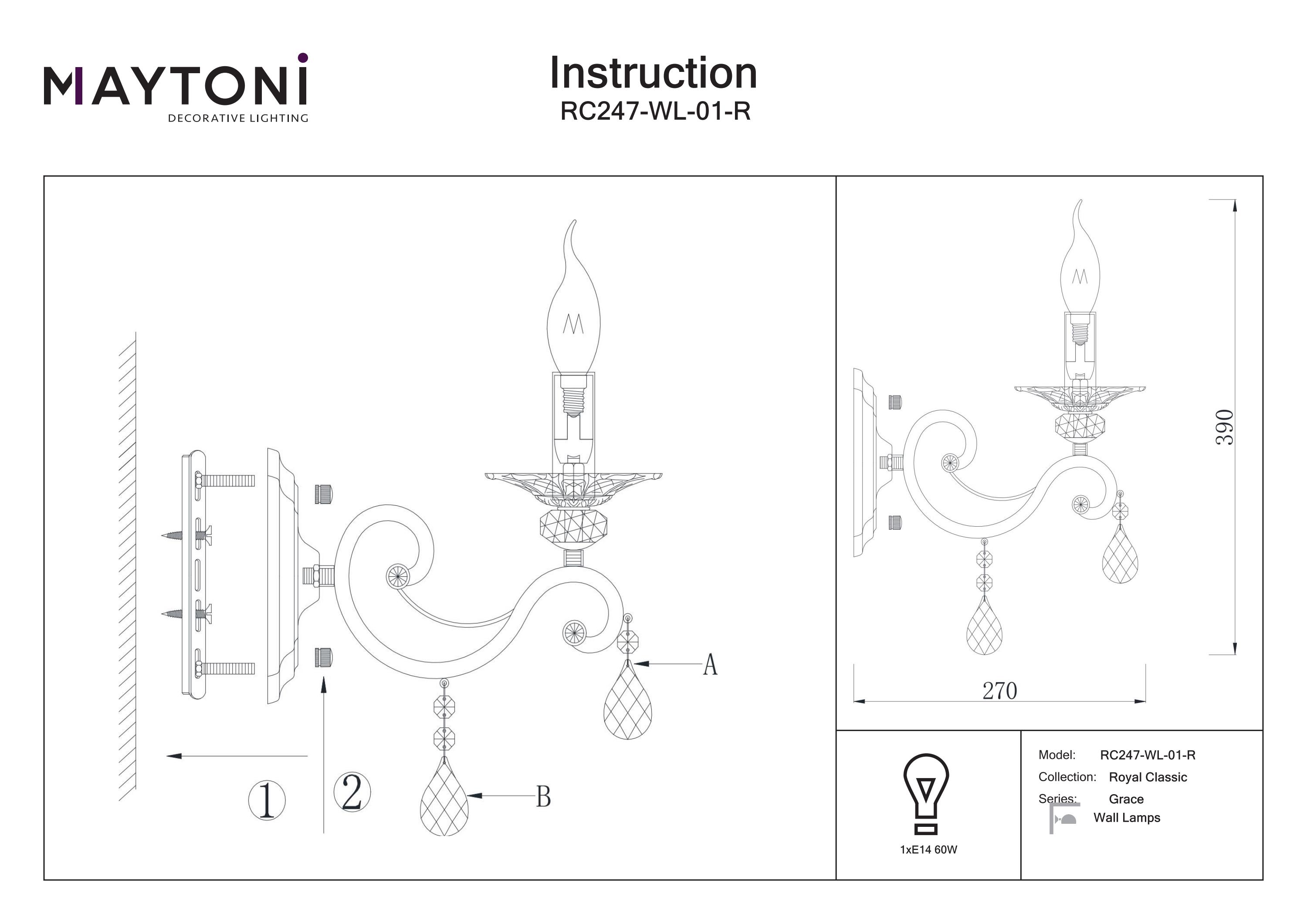 Maytoni Aplică de perete Grace, Metal Bronz, 60W, MAYTONI RC247-WL-01-R