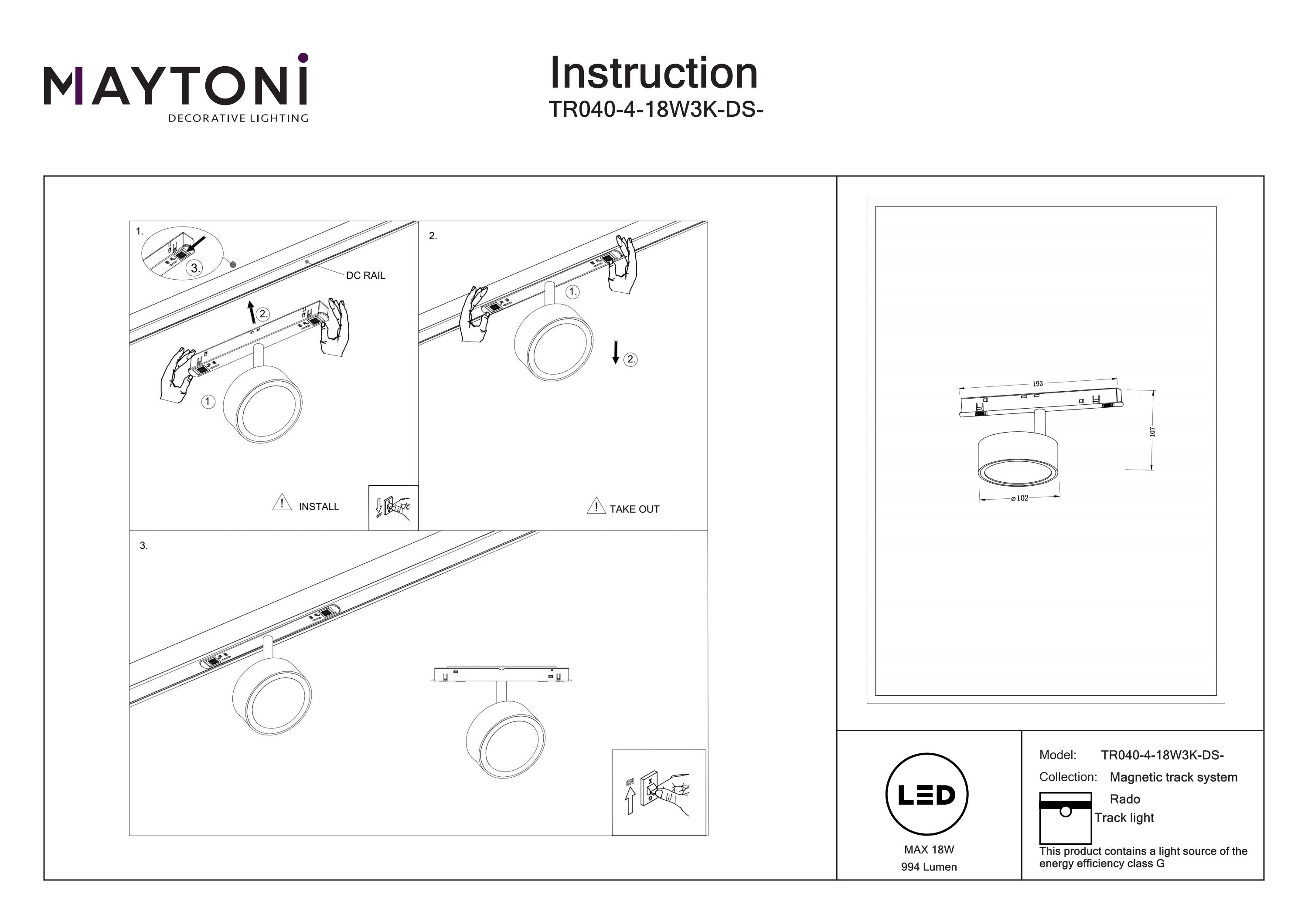 Instructiuni: https://mais-upload.maytoni.de/Documents/ecb1e99f-e4c8-4f10-9a57-480fce7186a8/o/Instruction_System_EN_TR040-4-18W3K-DS-BBS_(3).pdf