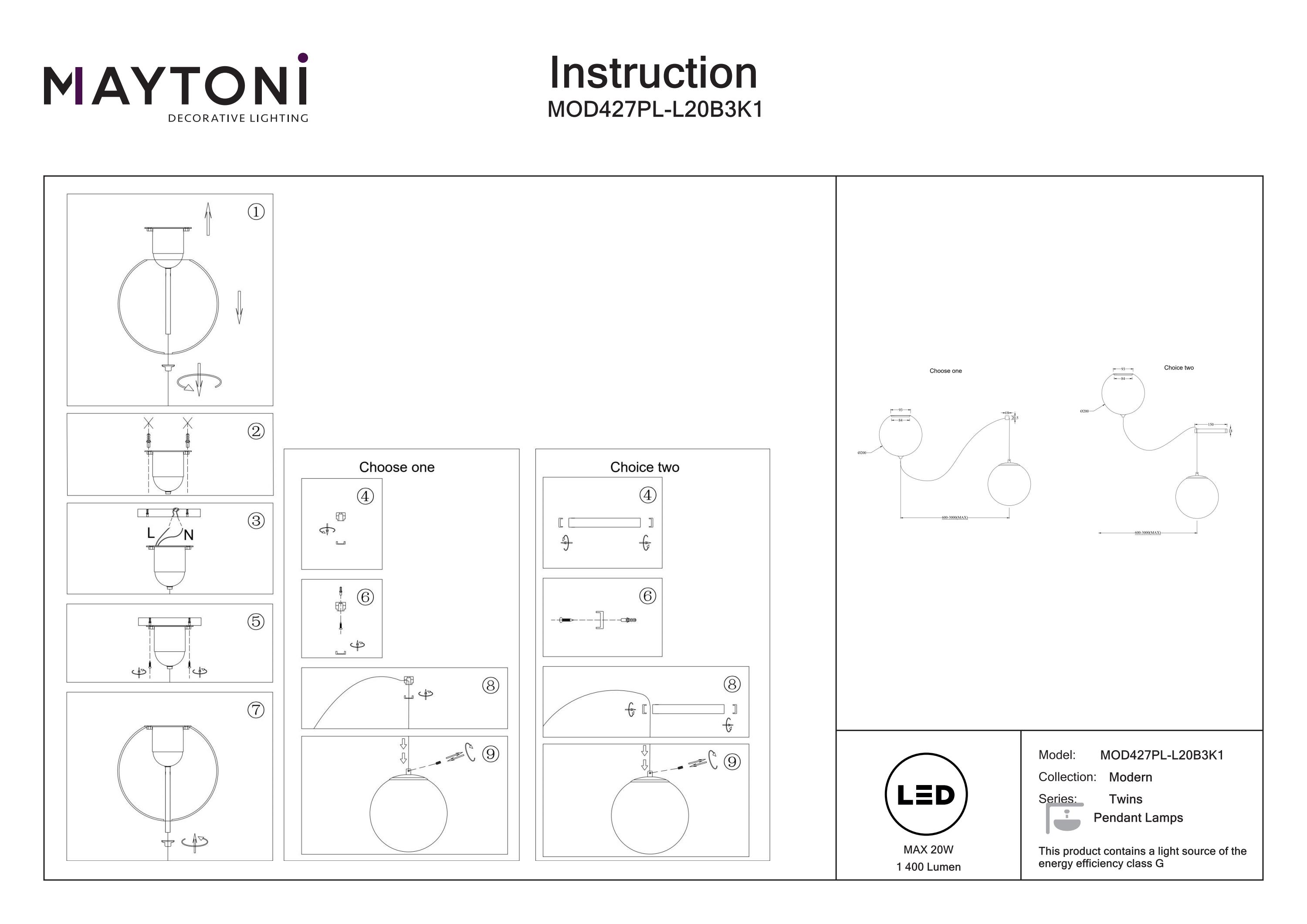 Maytoni Corp de iluminat suspendat Twins, Metal Negru, 20W, MAYTONI MOD427PL-L20B3K1