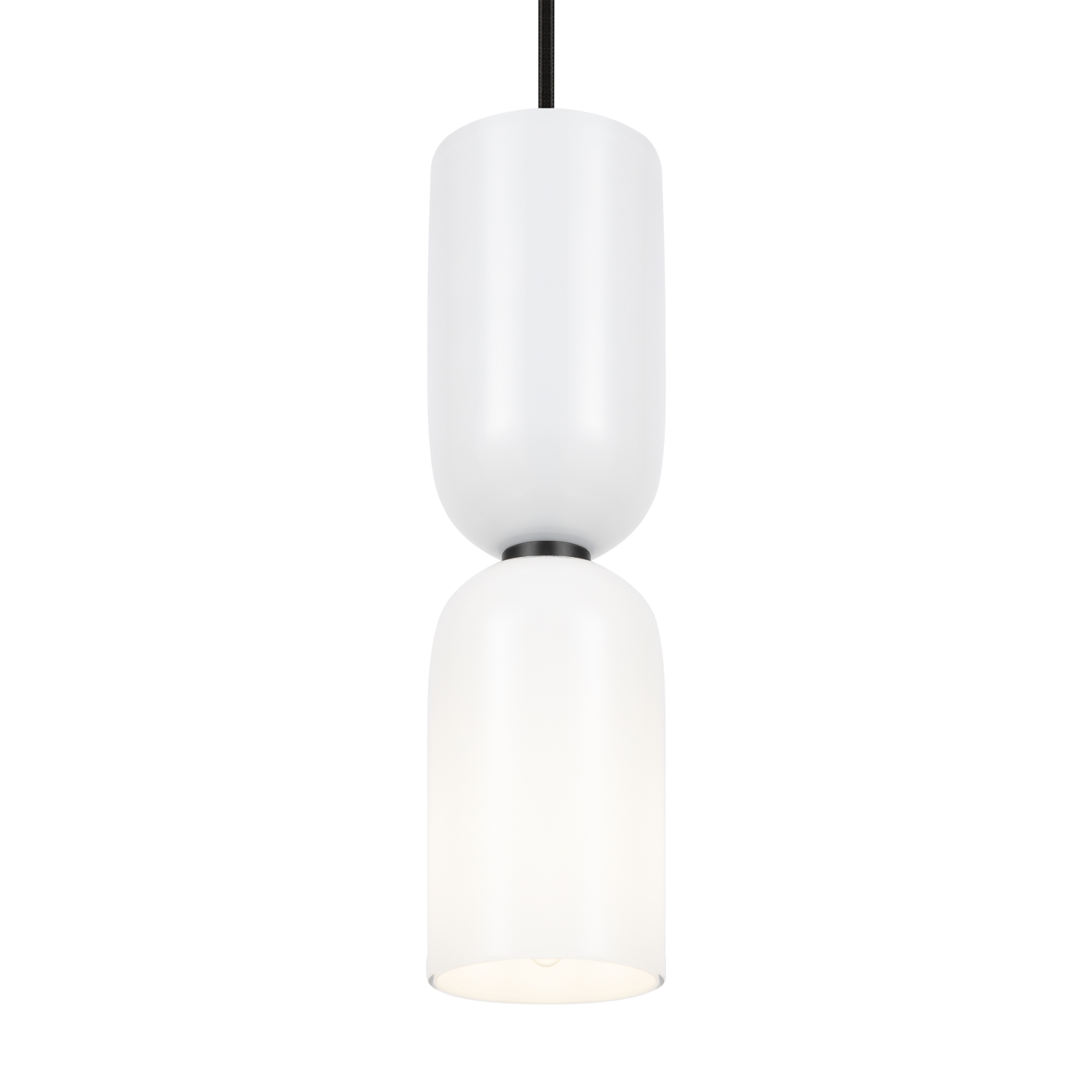 Armătură metalică și abajur negru, cu un design stilizat sub formă de clepsidră și linii fluide. Elementele ceramice cu glazură lucioasă și abajururile din ceramică albă, completate de sticlă în diverse variante cromatice, conferă un aspect rafinat.