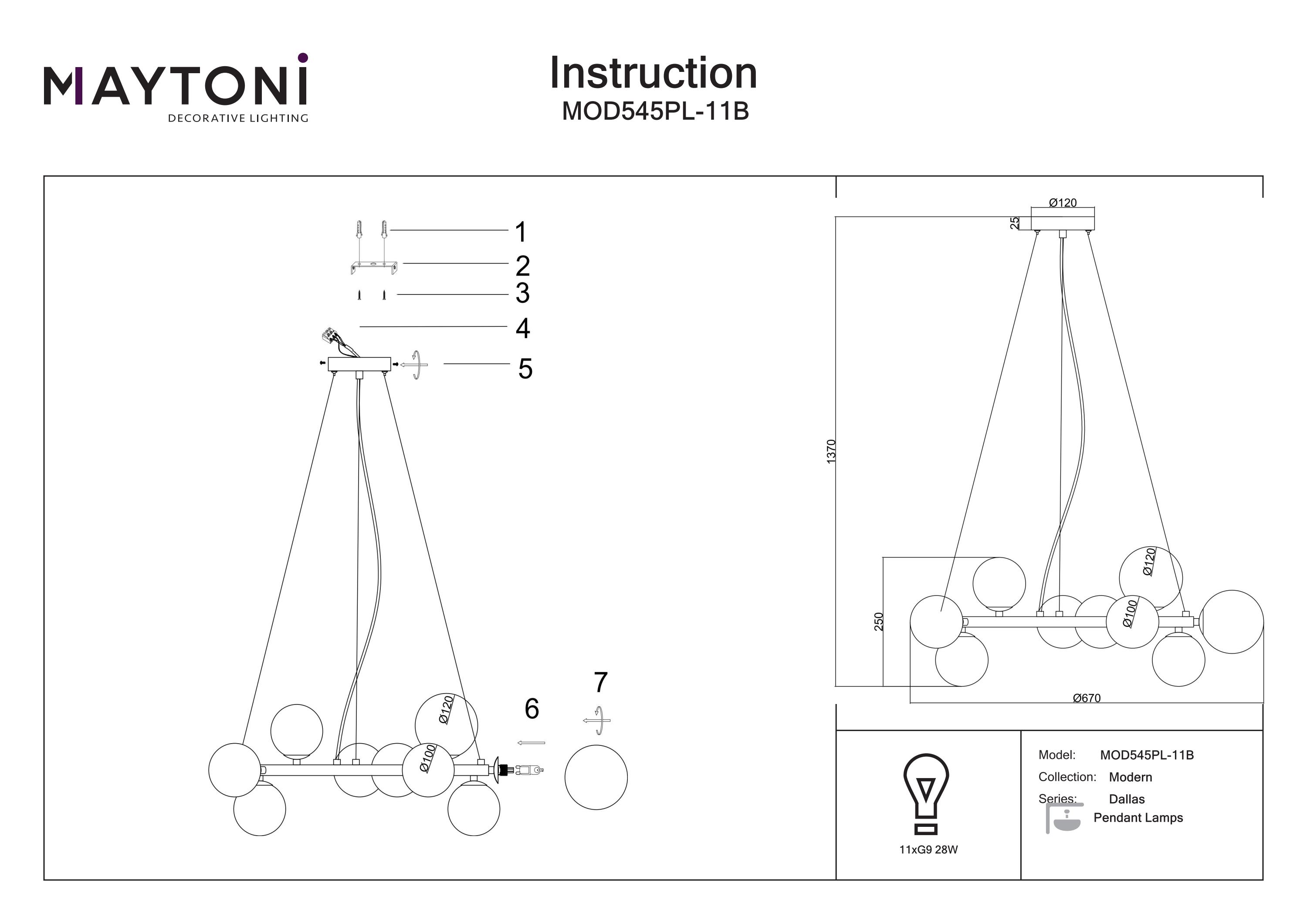 Designul modern simulează structura moleculară, oferind un accent estetic inovator oricărui interior. Înălțimea corpurilor de iluminat suspendate este reglabilă prin cablu, iar acestea sunt prevăzute cu soclu pentru becuri G9.