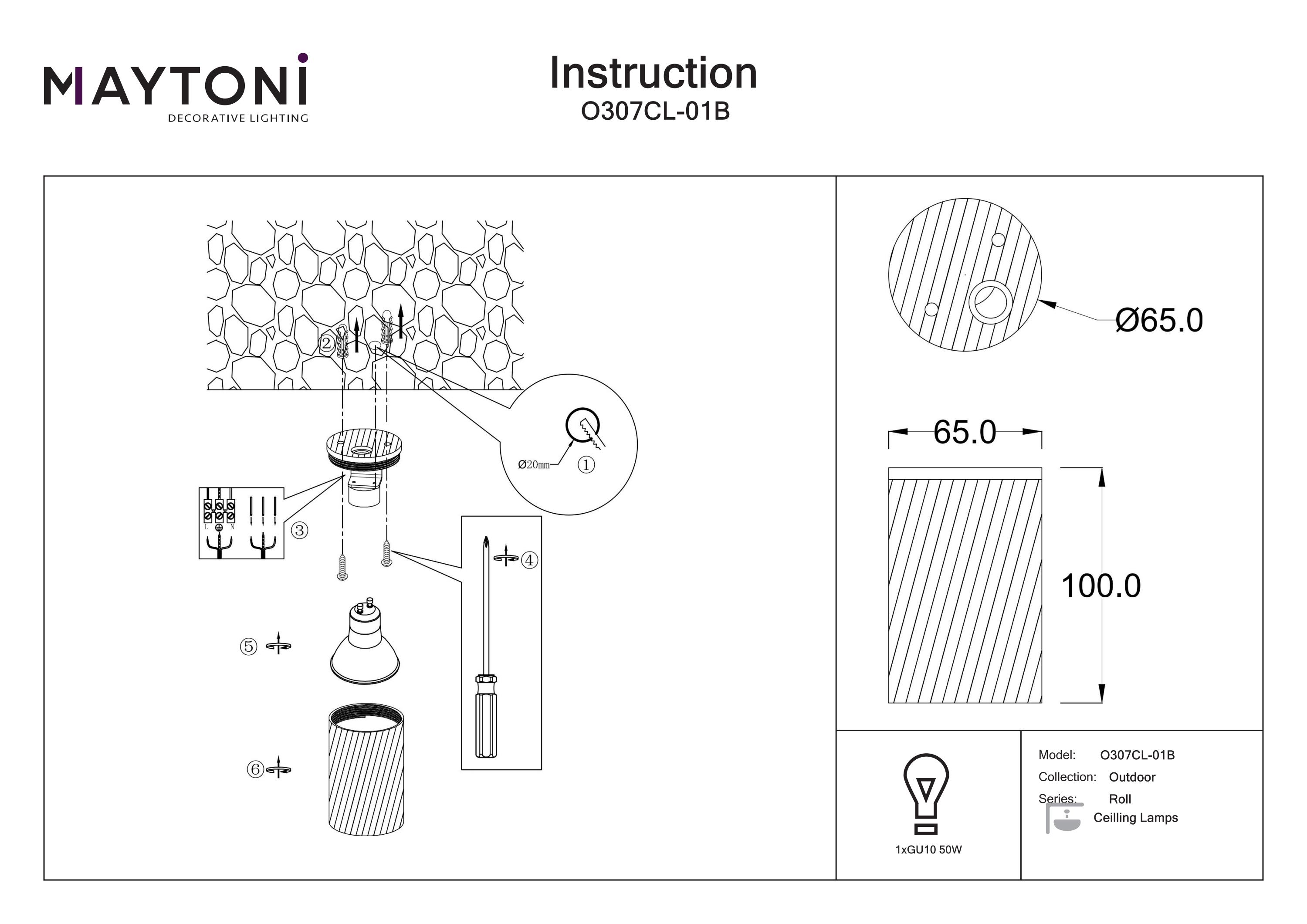 Această soluție de iluminat durabilă utilizează o sursă de lumină cu soclu GU10, combinând funcționalitatea cu un design minimalist și modern.