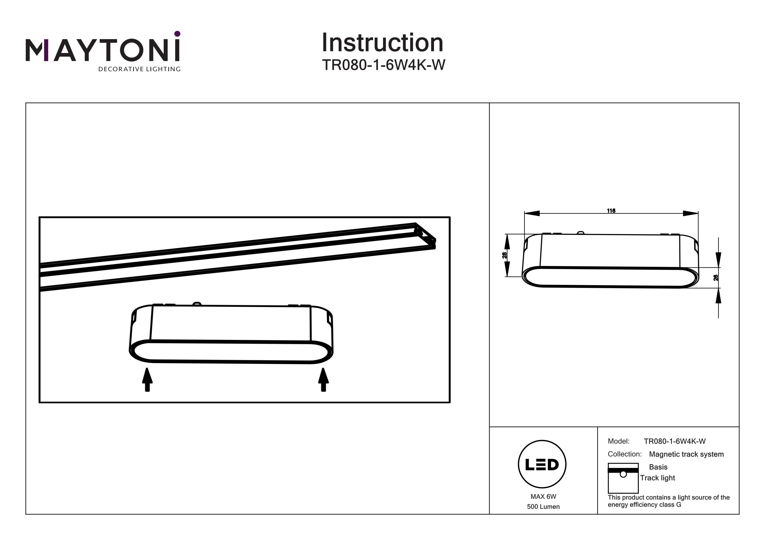 Maytoni Corp de iluminat pe șină BASIS, Aluminiu Alb, 6W, MAYTONI TR080-1-6W4K-W