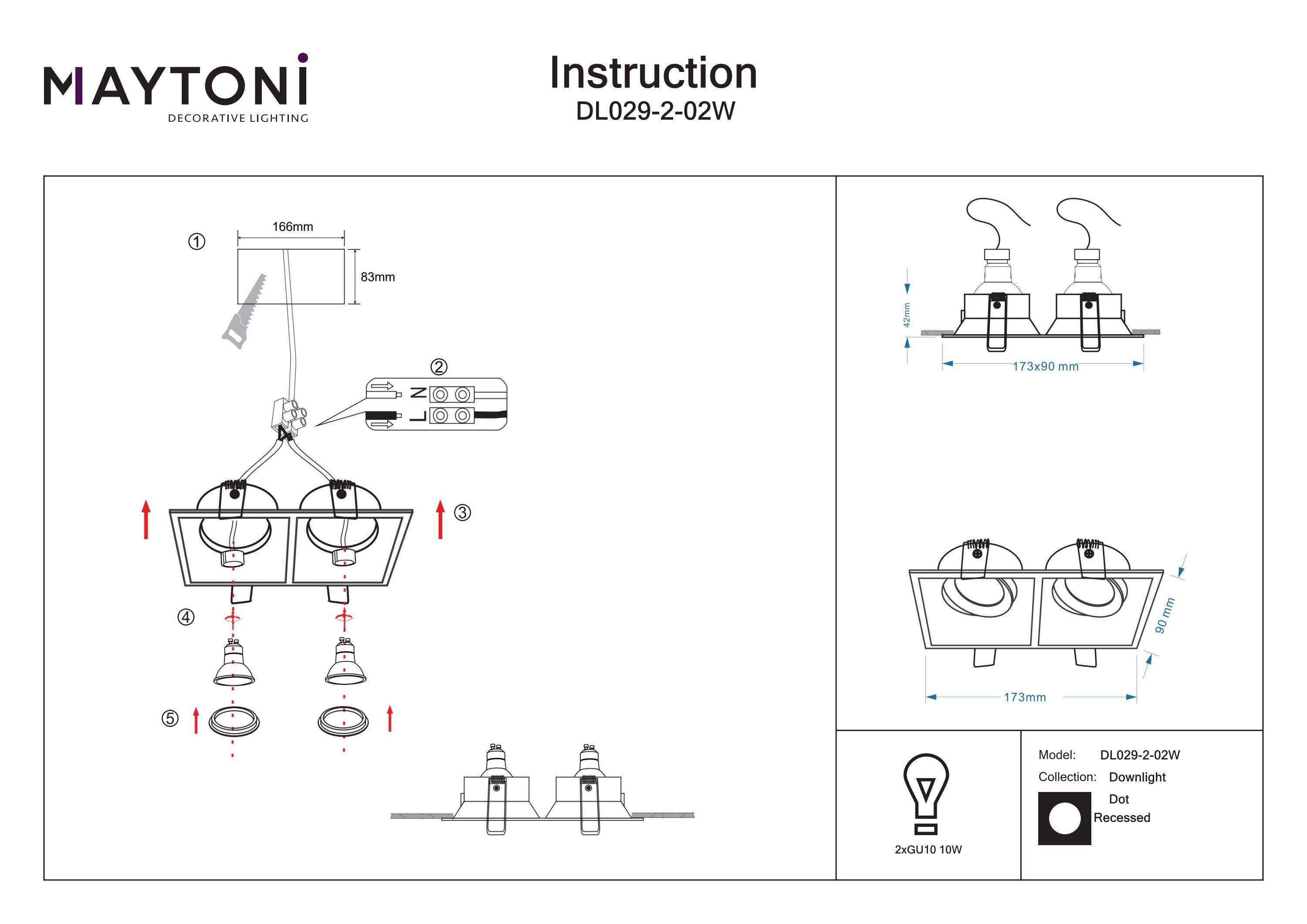 Produsul utilizează o sursă de lumină de tip bec GU10 (nu este inclus), permițând personalizarea iluminatului conform preferințelor utilizatorului.